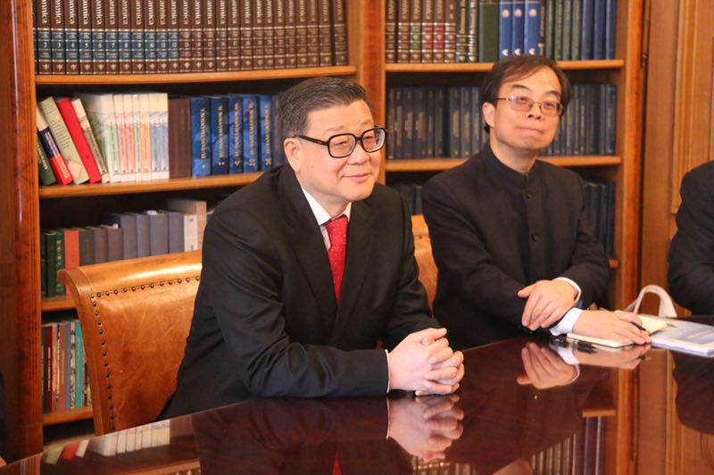 王伟光院长会见匈牙利科学院院长 2017-04-27 16+1智库网络 网站编辑 16+1智库网络 0 2017年4月24日上午,正在匈牙利访问并出席“中国—中东欧研究院”成立暨揭牌仪式的中国社会科学院院长、党组书记、16+1智库网络理事长、中国—中东欧研究院荣誉院长王伟光会见匈牙利科学院院长洛瓦斯·拉斯洛。双方就中国和中东欧国家智库合作、中国社会科学院和匈牙利科学院合作等问题进行了交流。中国社会科学院欧洲研究所所长、16+1 智库网络秘书长、中国—中东欧研究院院长黄平陪同会见。