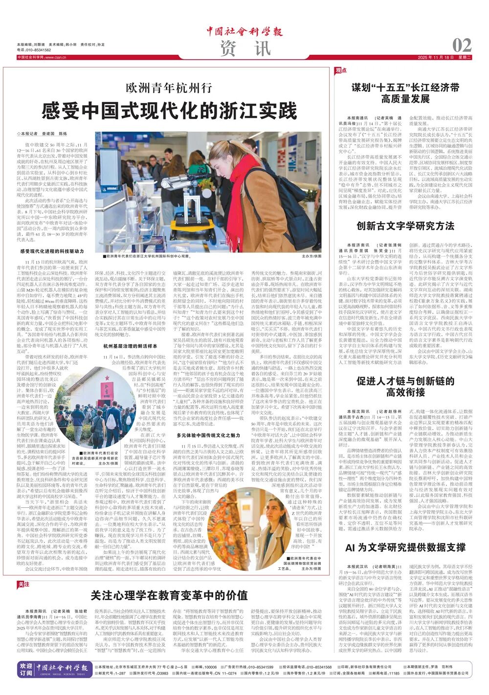 中国社会科学院欧洲研究所于11月17日在京成功举办首届“中欧青年对话会”(以下简称“对话会”)。本次对话会是深入学习贯彻习近平总书记关于青年工作的重要思想,落实高翔院长在我院首次青年工作会议上的讲话精神的重要举措。在对话会之前,11月12-16日,欧洲所组织30国61名欧洲青年赴浙江杭州参访,实地考察云深处科技、浙江大学杭州国际科创中心等高科技企业,访问西湖大学等顶尖科研机构,并深入安吉鄣吴村,亲身感受了中国式现代化发展成就、中华优秀传统文化魅力与基层治理实践经验。中国社会科学网于2025年11月18日对欧洲青年在浙江的活动进行了全面详细报道,原文标题《欧洲青年杭州行 感受中国式现代化的浙江实践》。