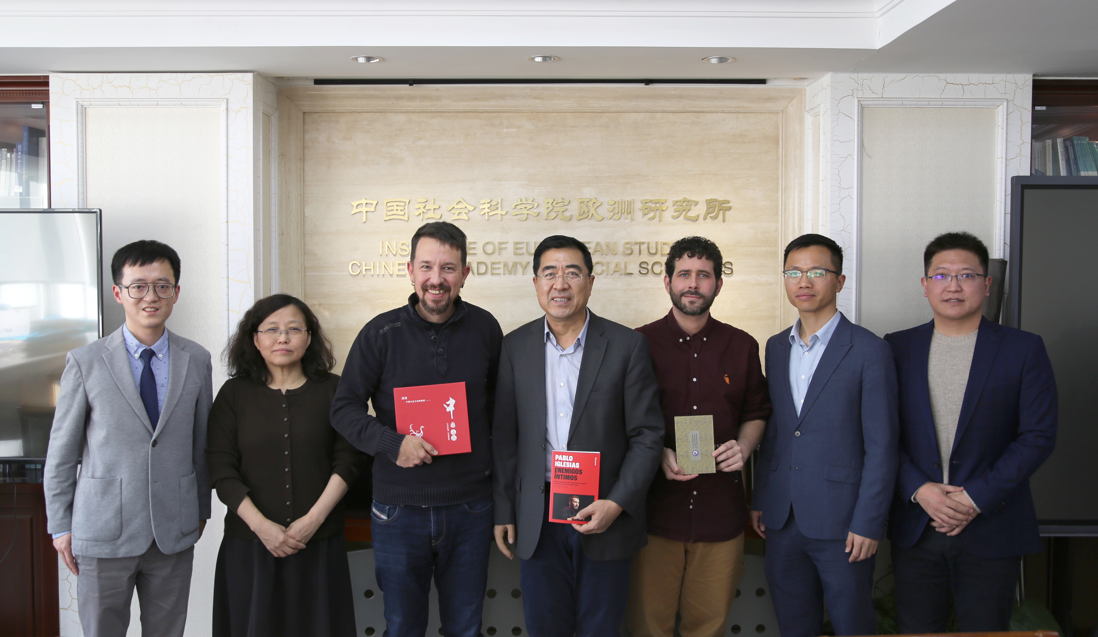 11月18日,西班牙前副首相、马德里康普顿斯大学教授巴勃罗·伊格莱西亚斯·图里翁(Pablo Iglesias Turrión)访问中国社会科学院欧洲研究所。冯仲平所长、赵江林副所长会见伊格莱西亚斯一行。中国社会科学院西班牙研究中心组织专家学者,与伊格莱西亚斯开展学术对话。
