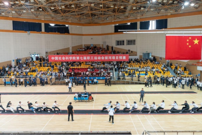 9月24日,北京市东城区地坛体育馆内人声鼎沸,此起彼伏的加油声不绝于耳,中国社会科学院第七届职工运动会拔河项目预赛在此开赛,来自院属各单位的51支参赛队参加比赛。历经分组循环赛、淘汰赛、排名赛,服务中心、图书馆、中国社会科学院大学、哲学研究所四支队伍胜出,将在10月17日决出前四名排名。