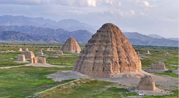 这是2025年7月10日在宁夏银川市拍摄的西夏陵1号陵与2号陵(无人机照片)。新华社记者 王鹏 摄