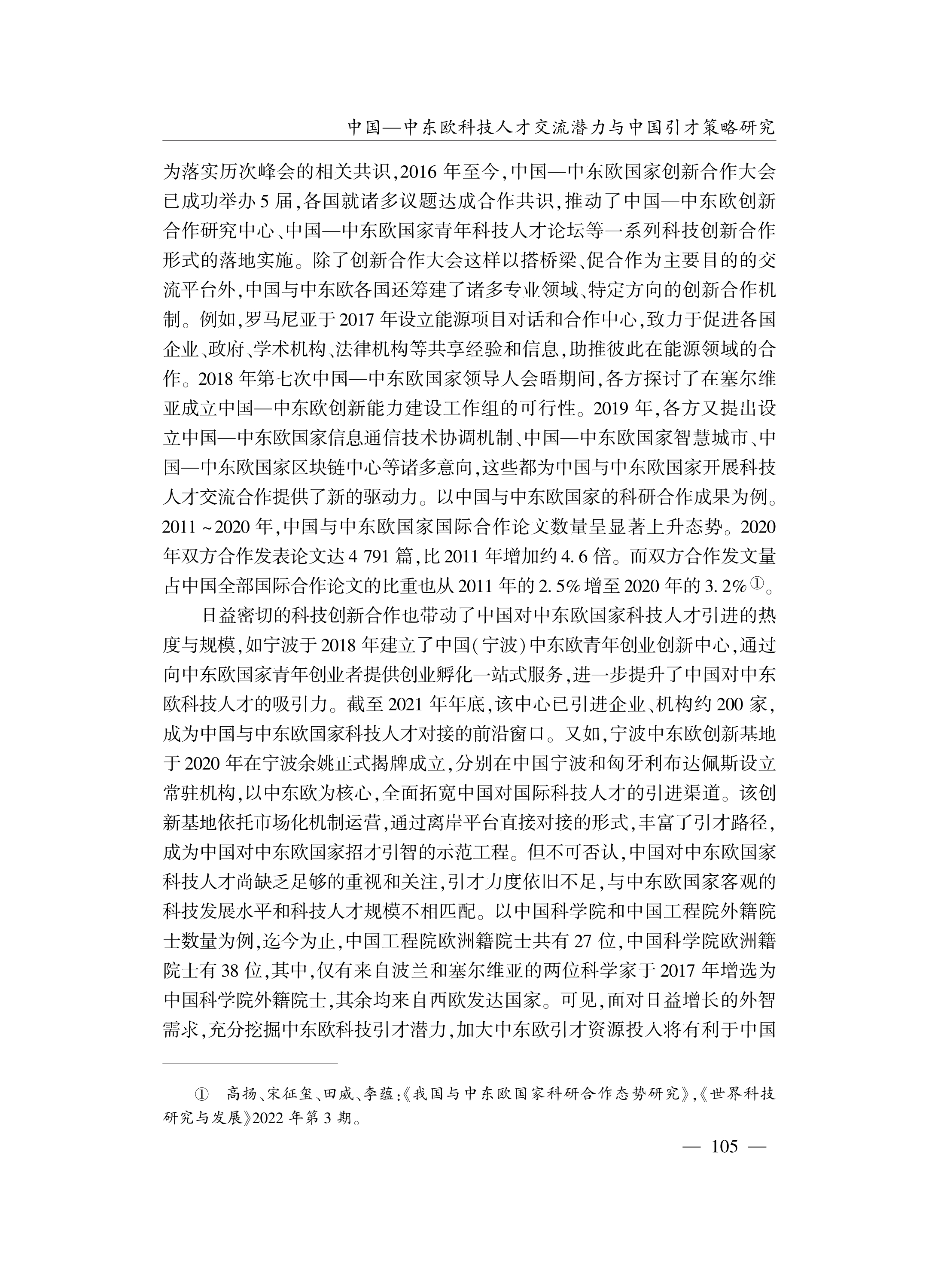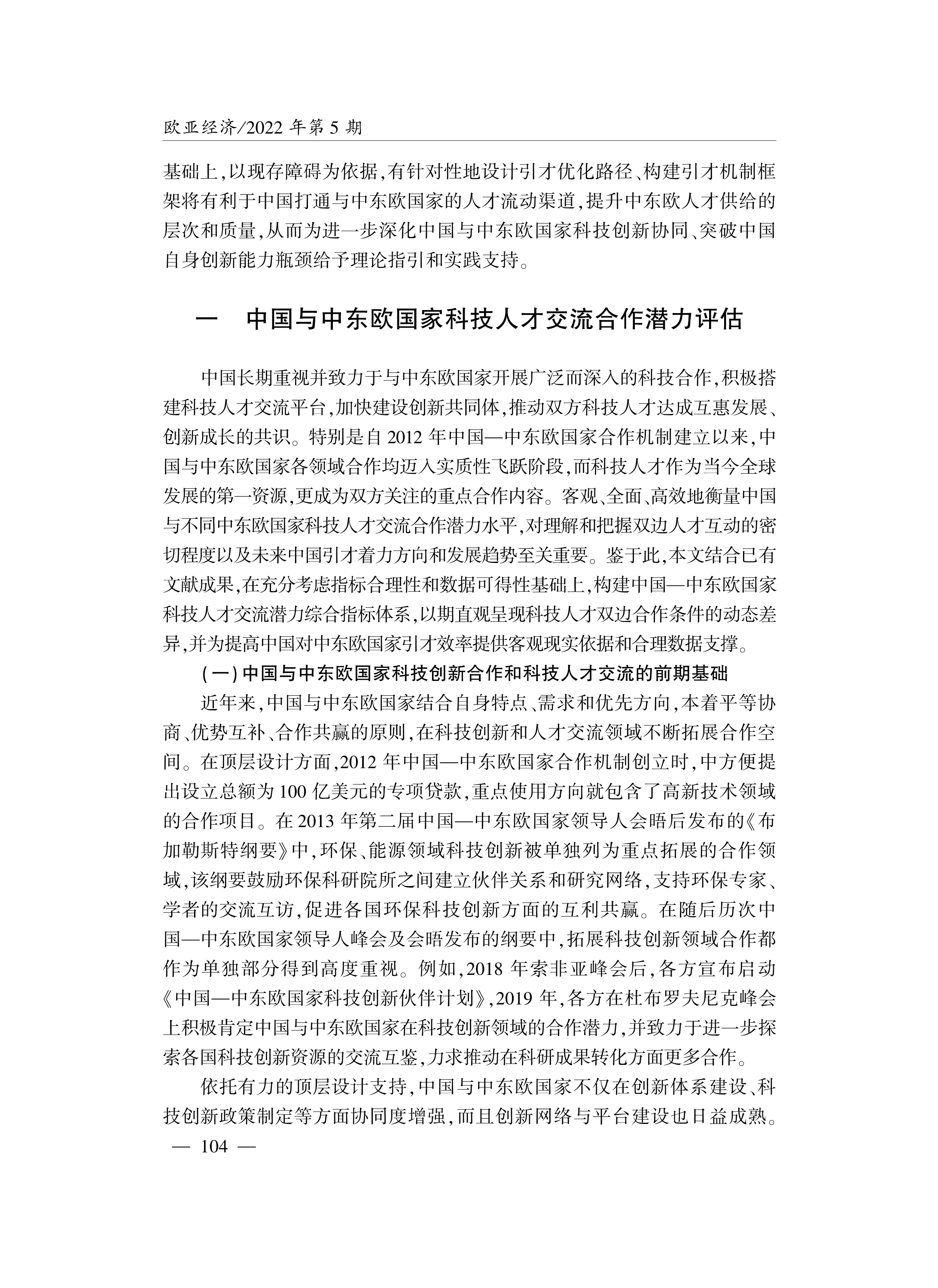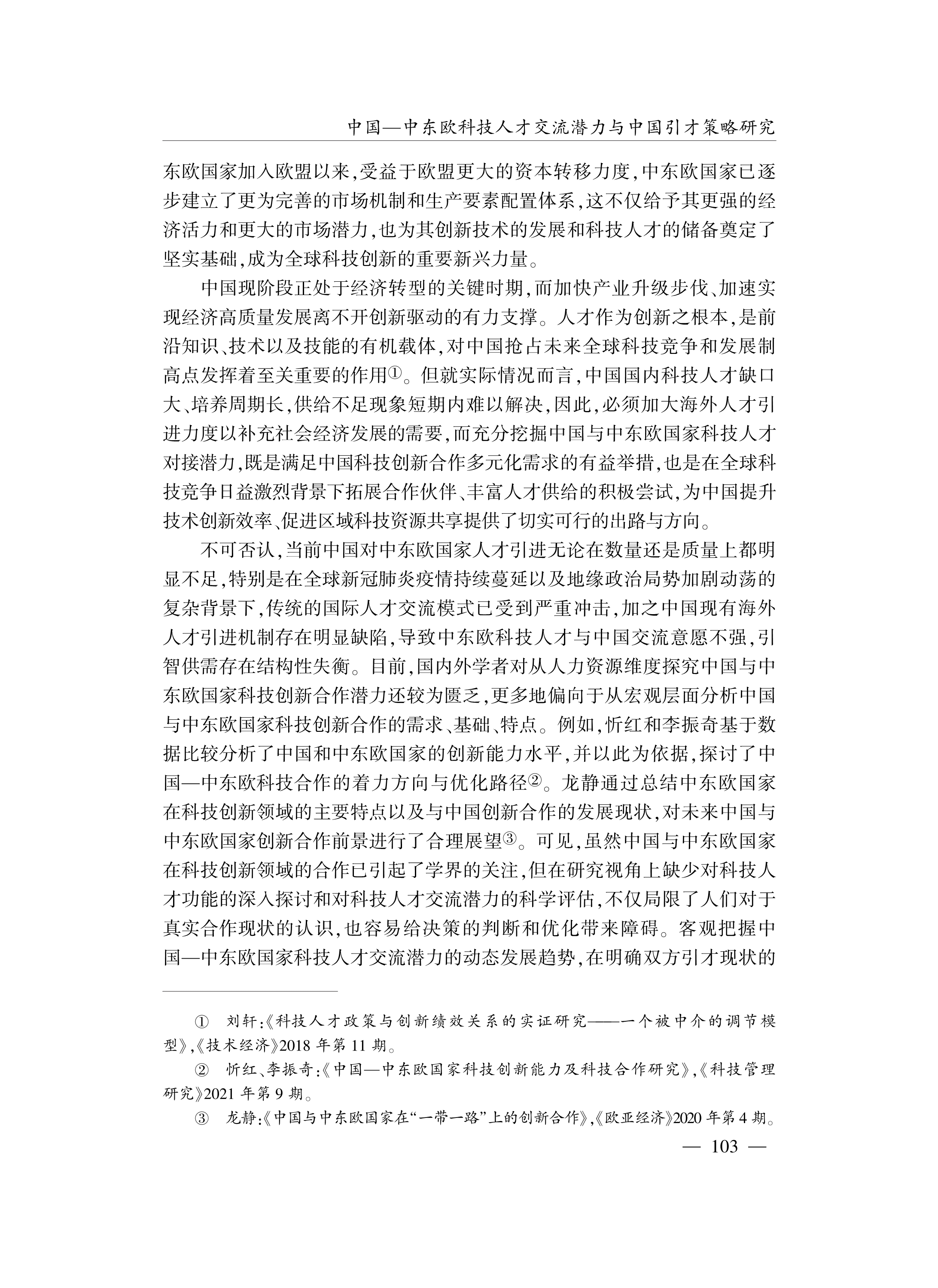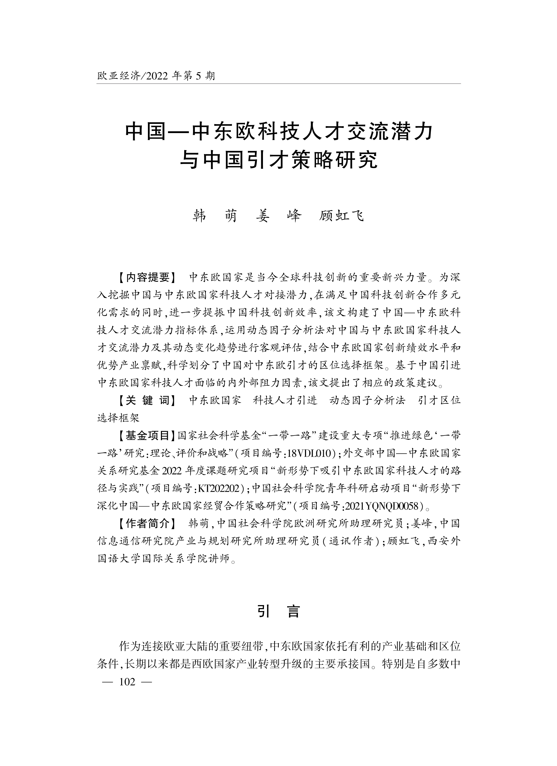 韩萌、姜峰、顾虹飞:中国—中东欧科技人才交流潜力与中国引才策略研究 2022-10-10 韩萌、姜峰、顾虹飞 《欧亚经济》,2022年第5期 0 作者简介: 韩萌,中国社会科学院欧洲研究所助理研究员。 姜峰,中国信息通信研究院产业与规划研究所助理研究员(通讯作者)。 顾虹飞,西安外国语大学国际关系学院讲师。 文章来源:《欧亚经济》,2022年第5期。已获得作者授权。
