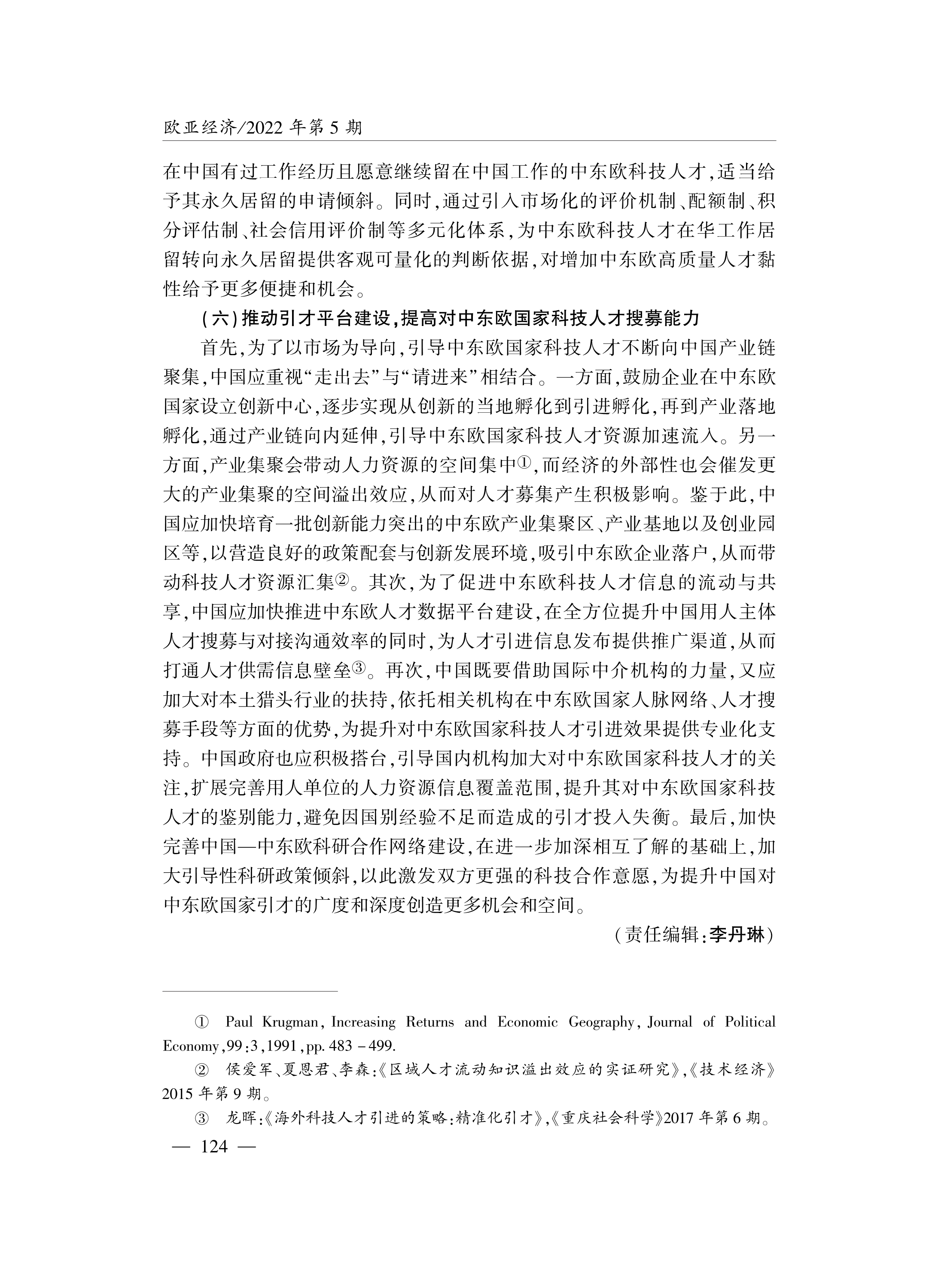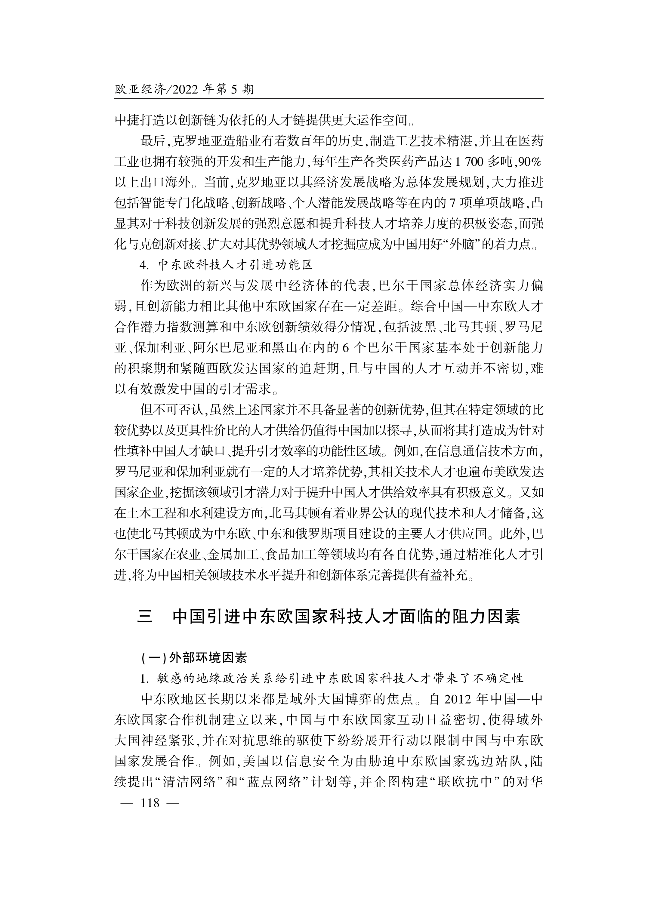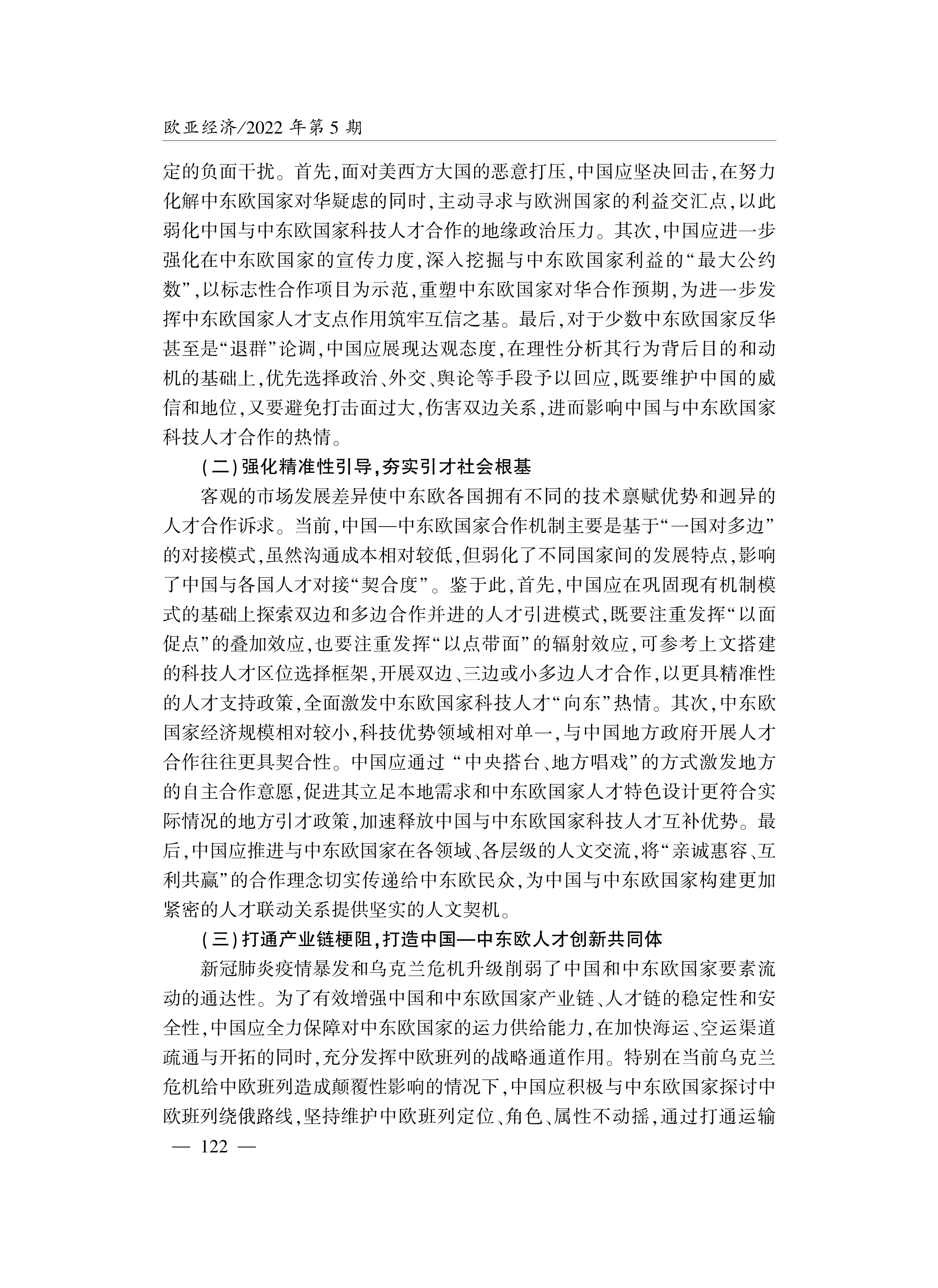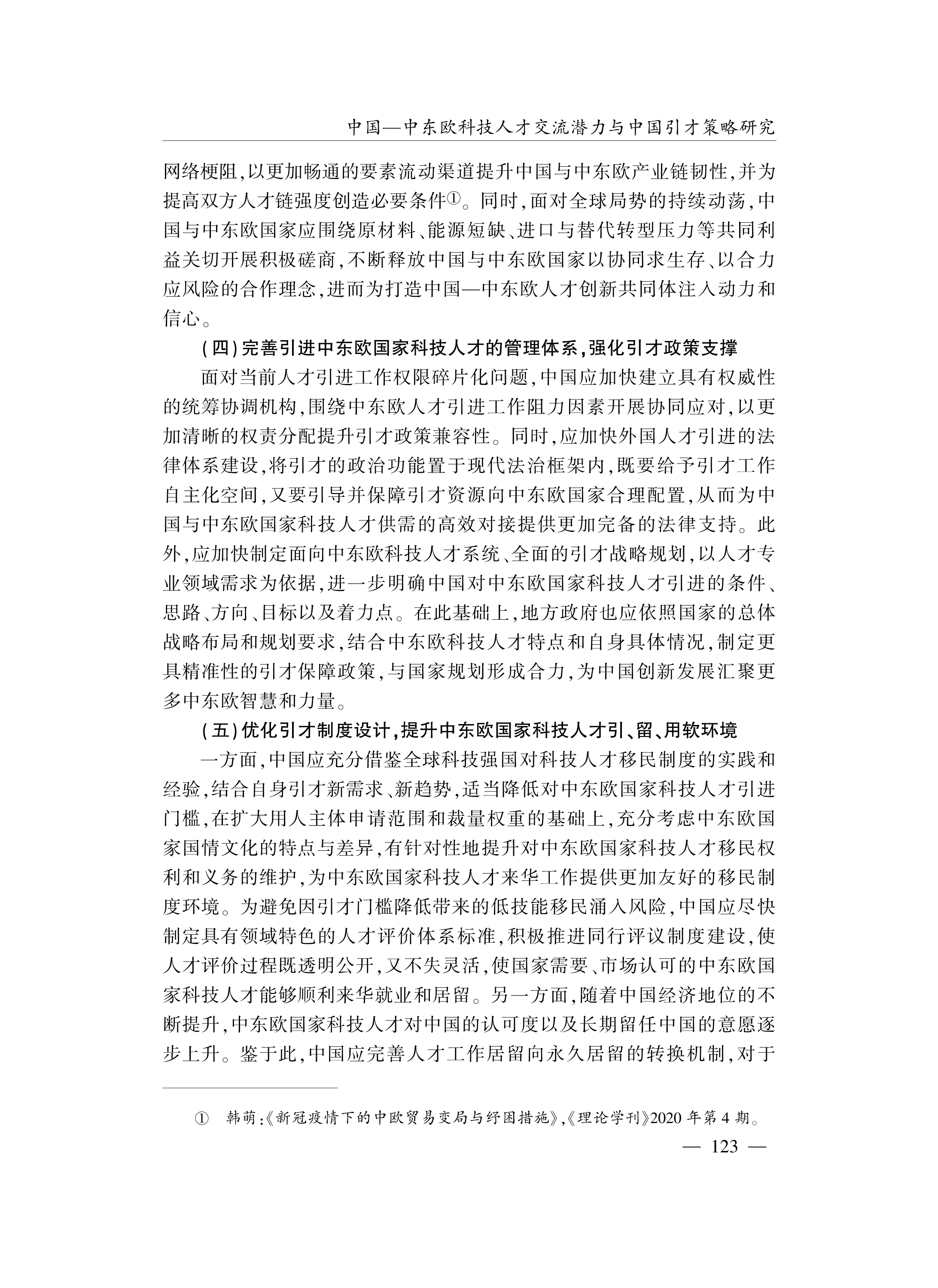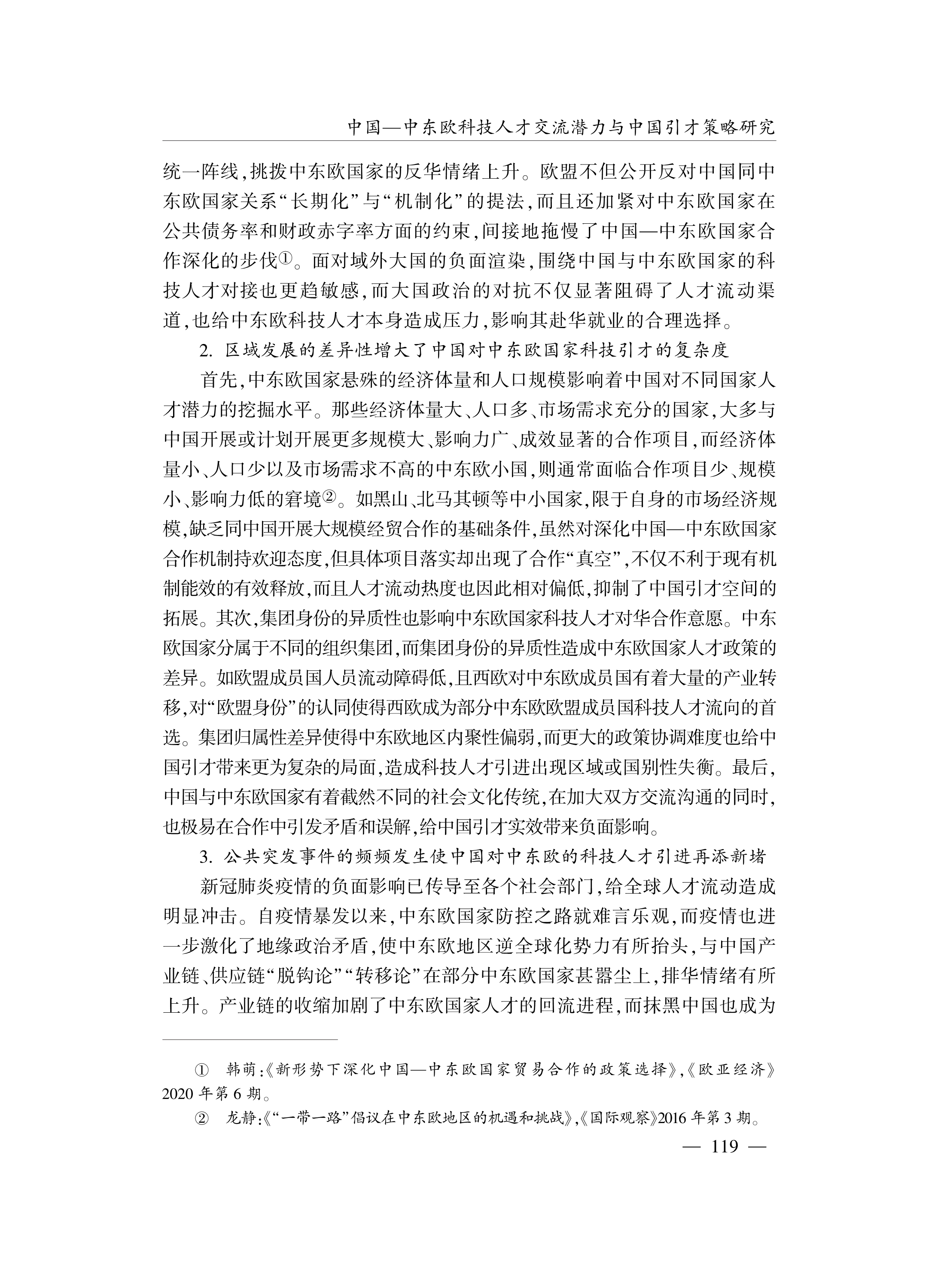 韩萌、姜峰、顾虹飞:中国—中东欧科技人才交流潜力与中国引才策略研究 2022-10-10 韩萌、姜峰、顾虹飞 《欧亚经济》,2022年第5期 0 作者简介: 韩萌,中国社会科学院欧洲研究所助理研究员。 姜峰,中国信息通信研究院产业与规划研究所助理研究员(通讯作者)。 顾虹飞,西安外国语大学国际关系学院讲师。 文章来源:《欧亚经济》,2022年第5期。已获得作者授权。