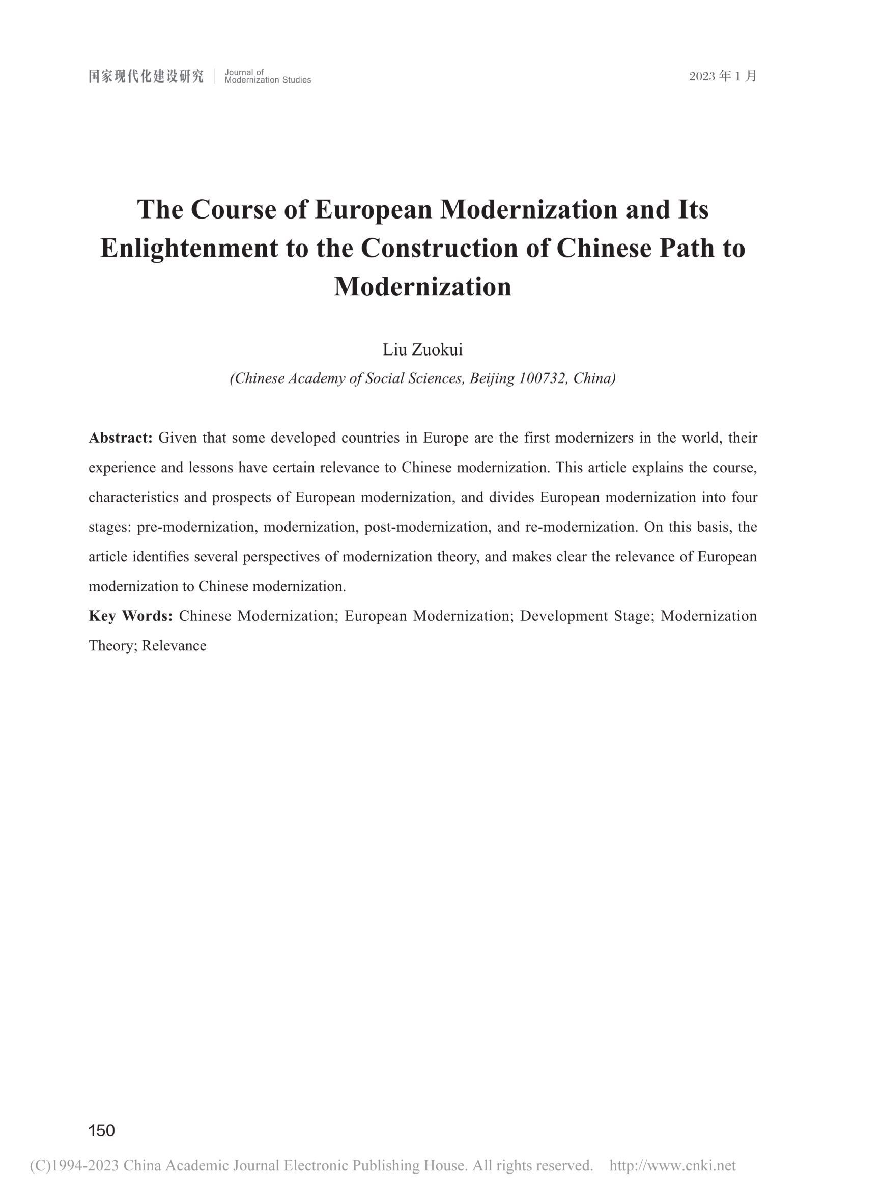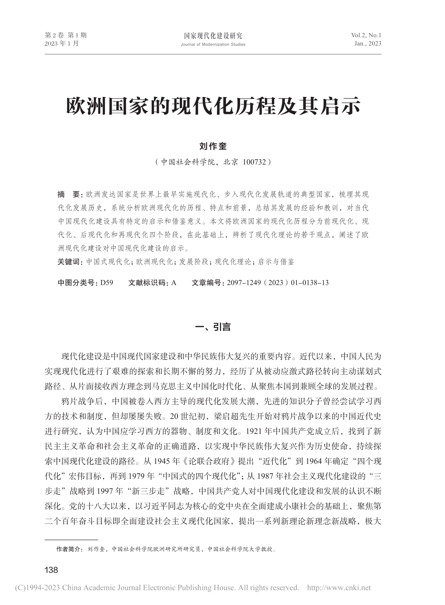 刘作奎:欧洲国家的现代化历程及其启示 2023-02-15 刘作奎 《国家现代化建设研究》,2023年第1期 0 作者简介:刘作奎,中国社会科学院欧洲研究所副所长、研究员。 文章来源:《国家现代化建设研究》,2023年第1期。已获得作者授权。