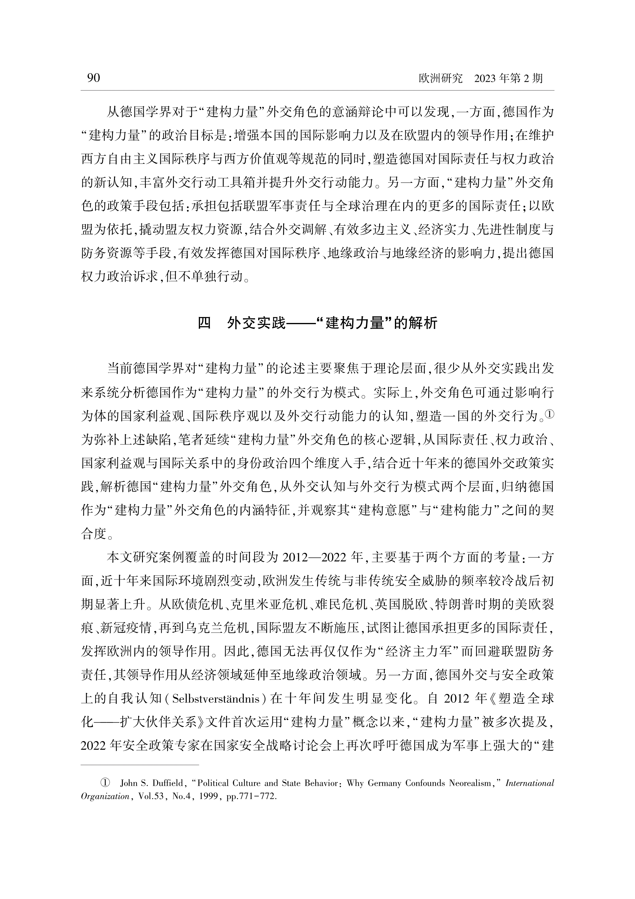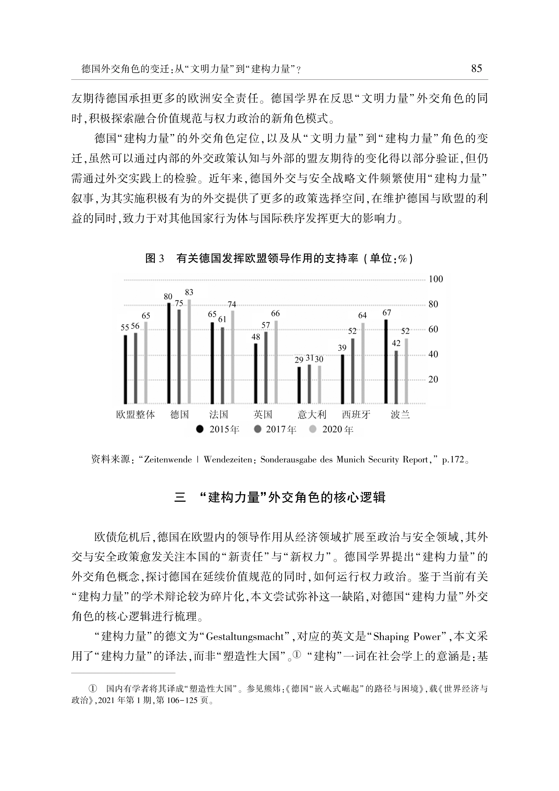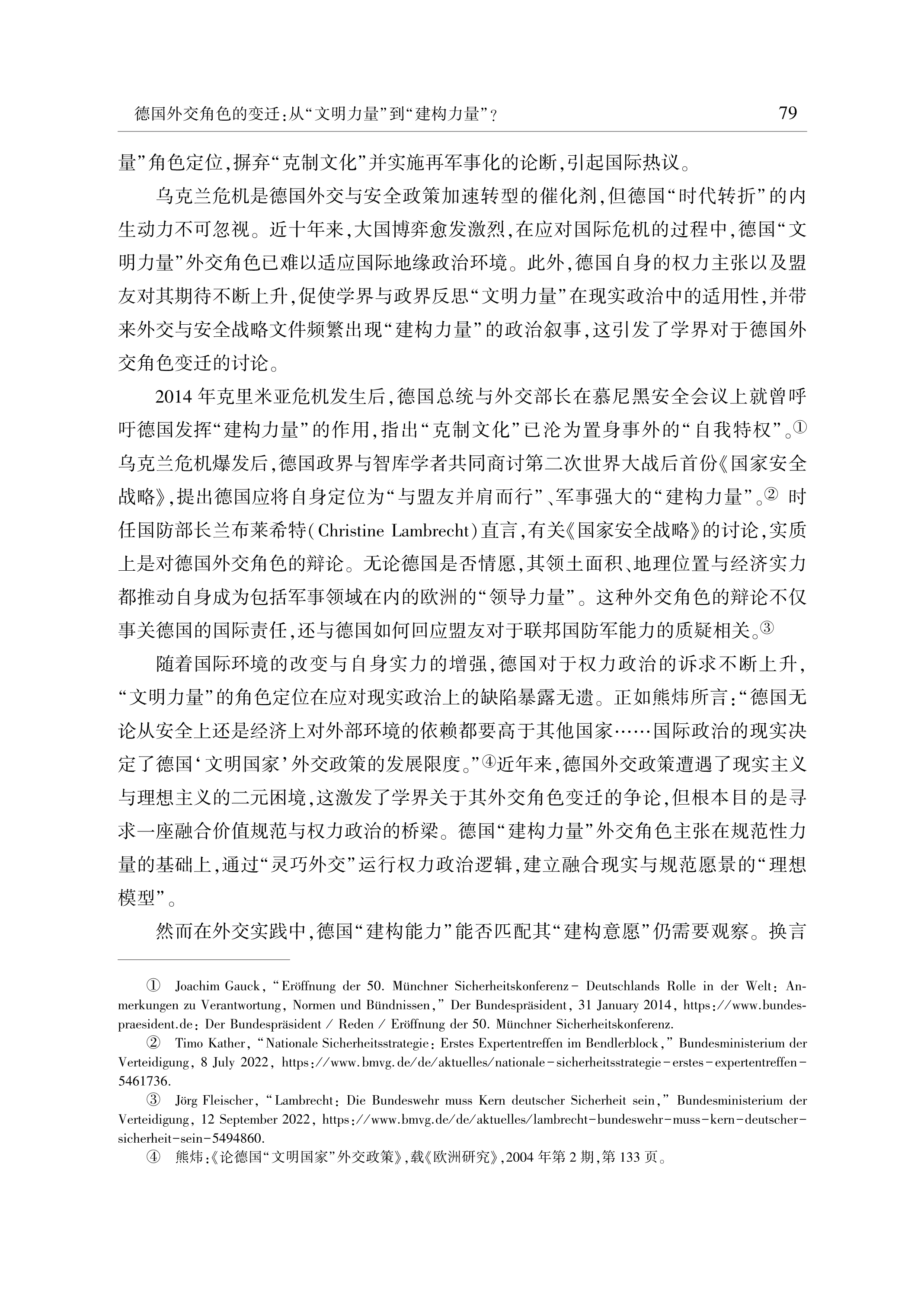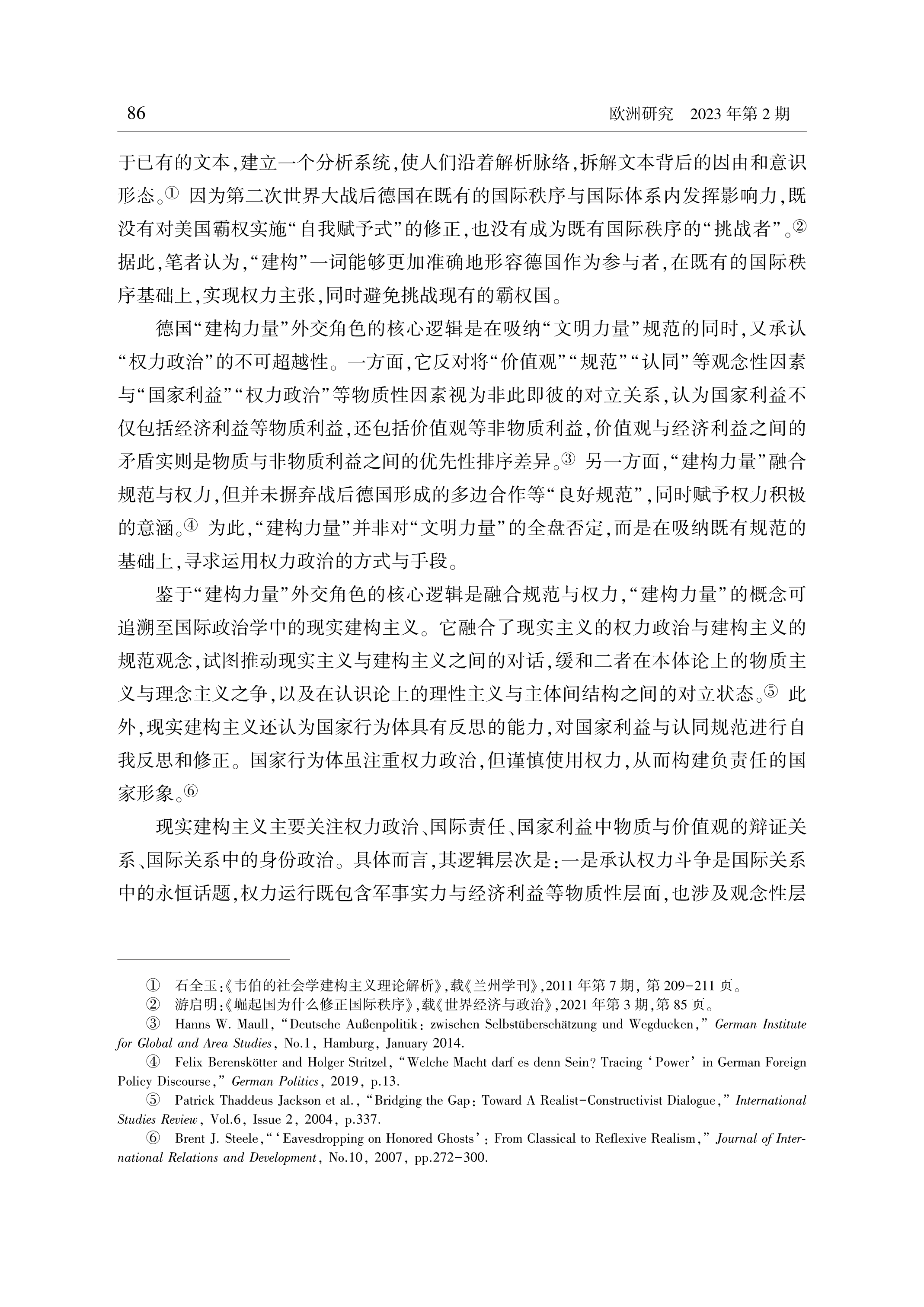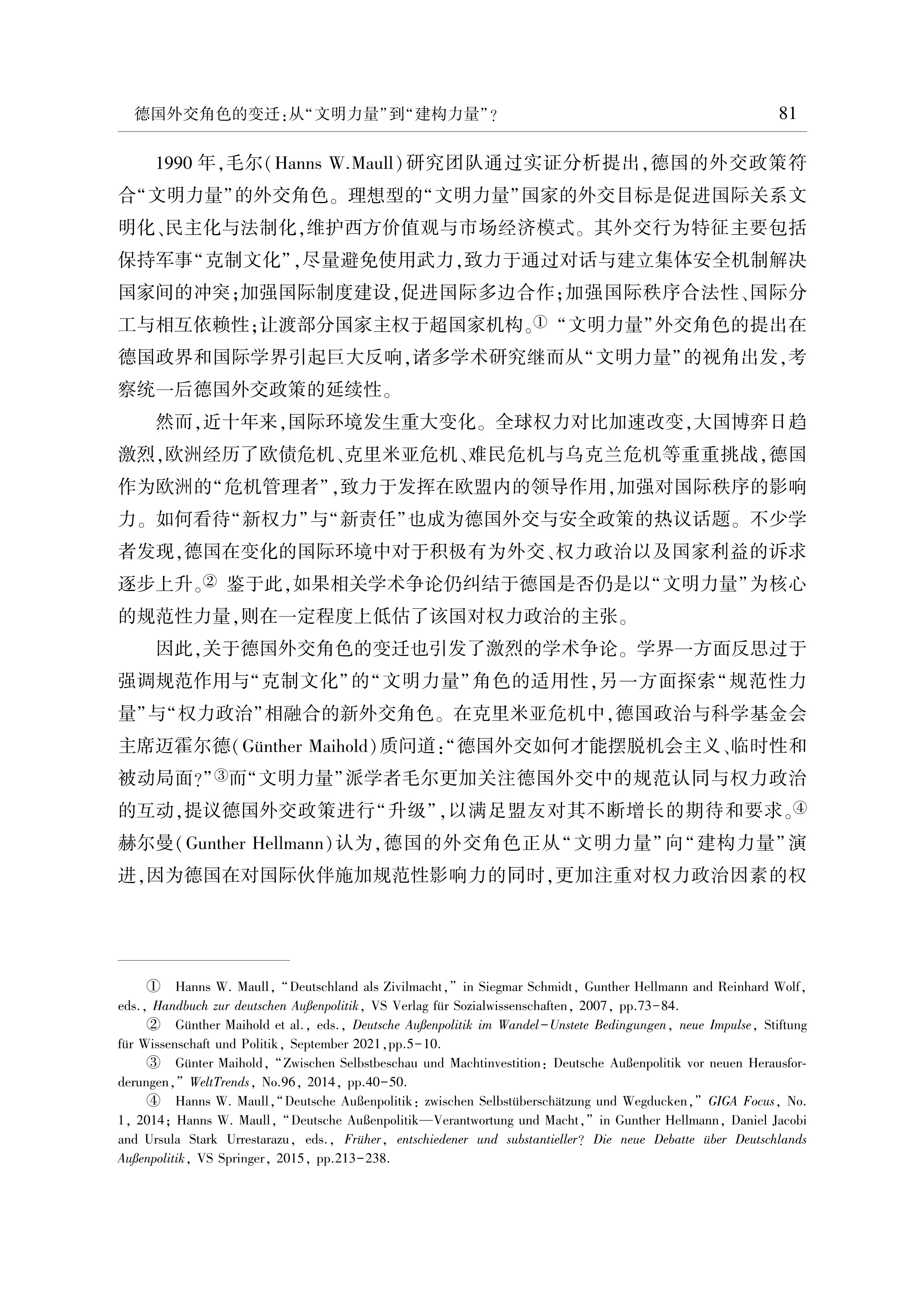 黄萌萌:德国外交角色的变迁:从“文明力量”到“建构力量”? 2023-06-26 黄萌萌 《欧洲研究》,2023年第2期 0 作者简介:黄萌萌,中国社会科学院欧洲研究所助理研究员。 文章来源:《欧洲研究》,2023年第2期。已获得作者授权。