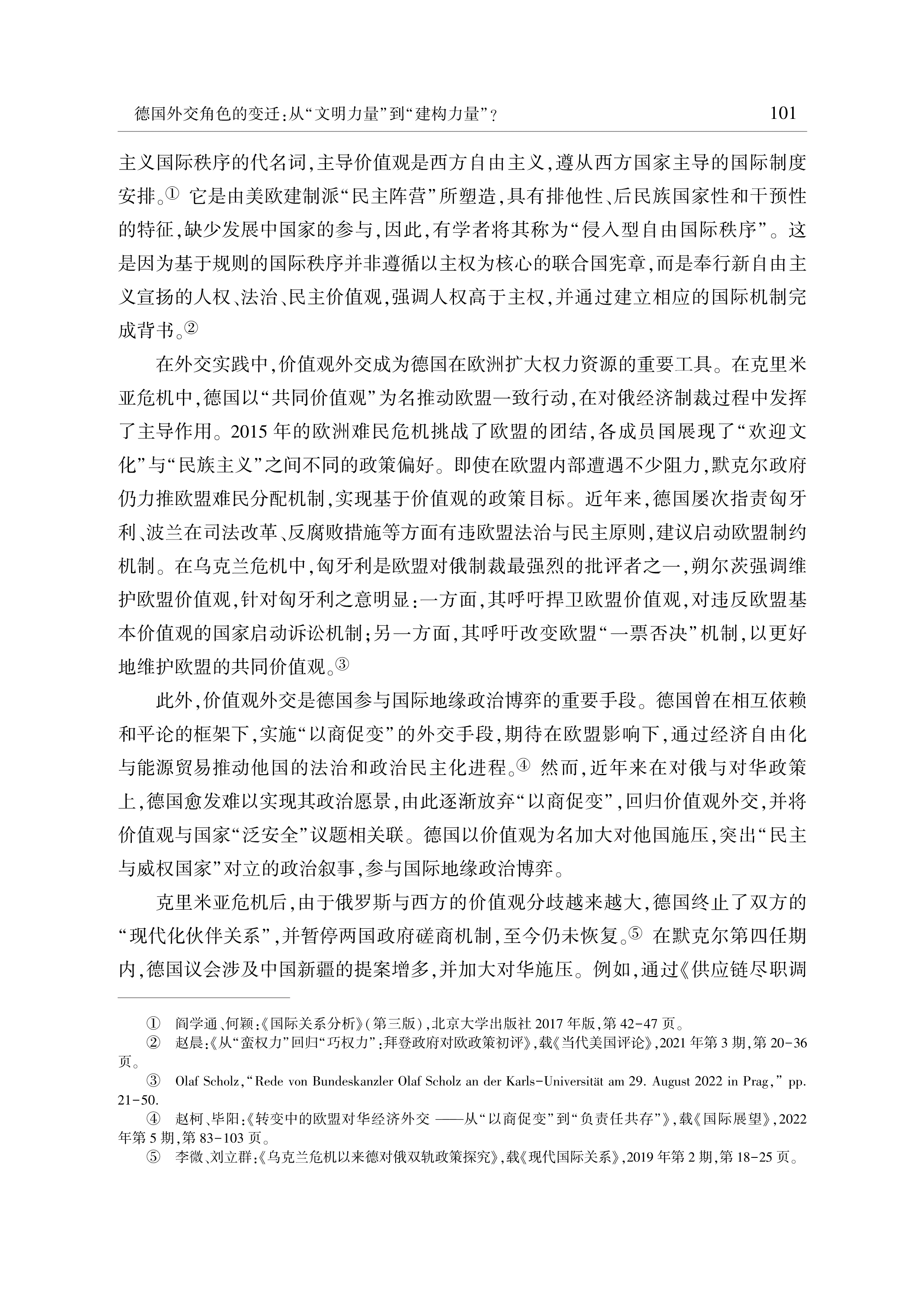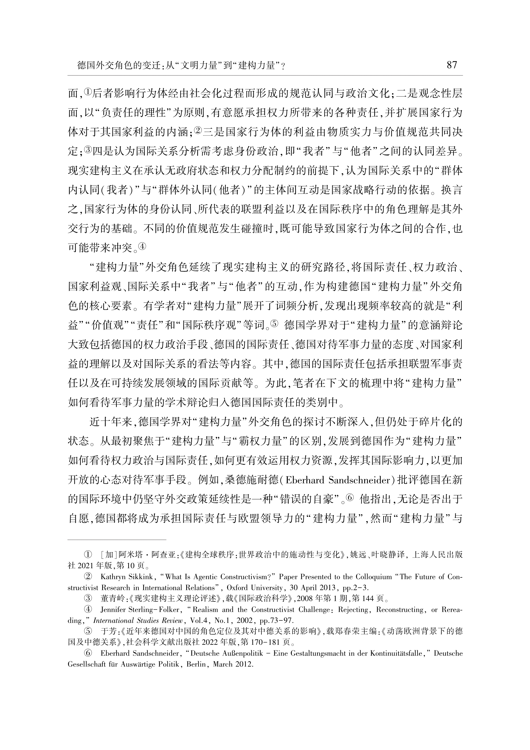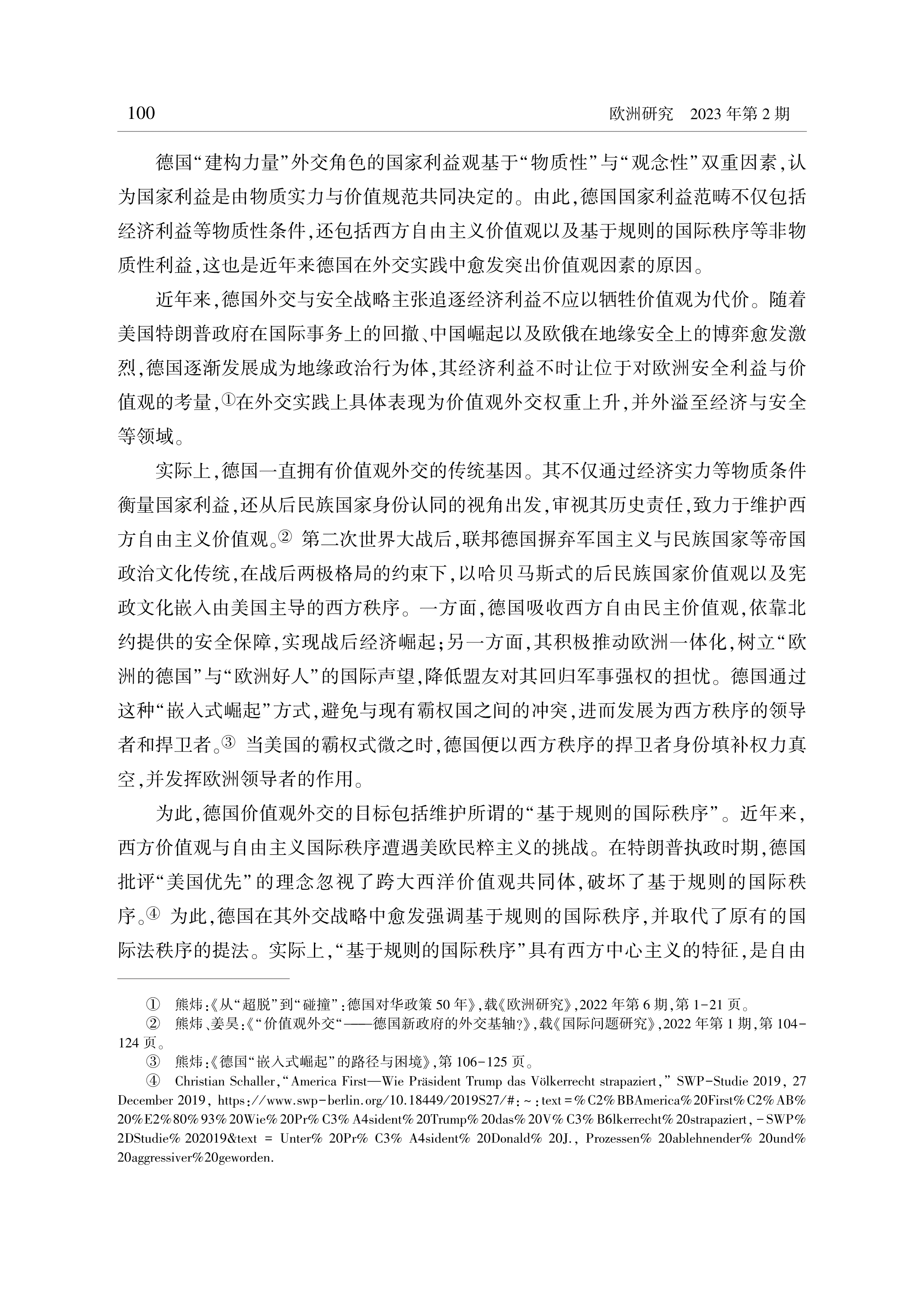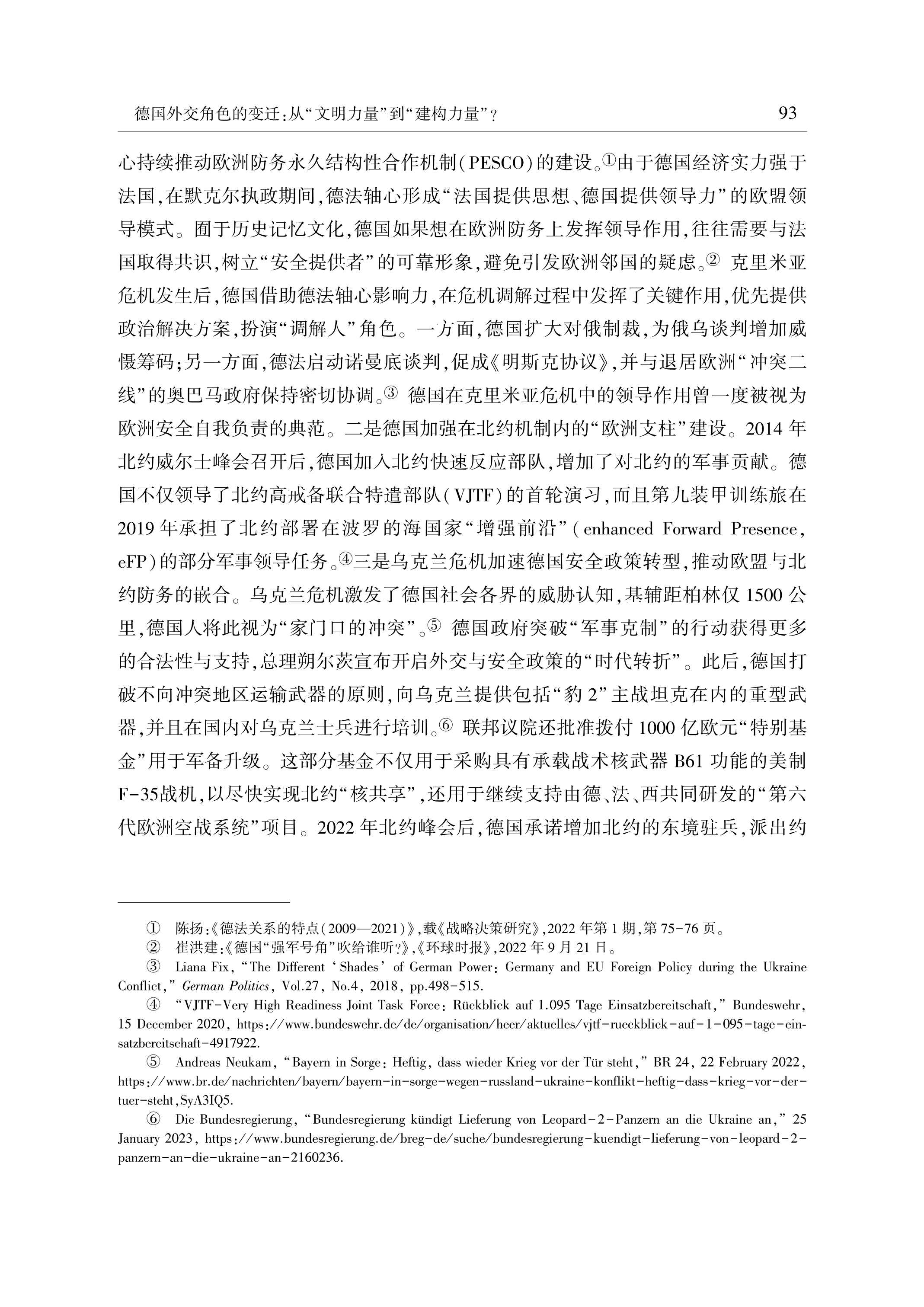 黄萌萌:德国外交角色的变迁:从“文明力量”到“建构力量”? 2023-06-26 黄萌萌 《欧洲研究》,2023年第2期 0 作者简介:黄萌萌,中国社会科学院欧洲研究所助理研究员。 文章来源:《欧洲研究》,2023年第2期。已获得作者授权。