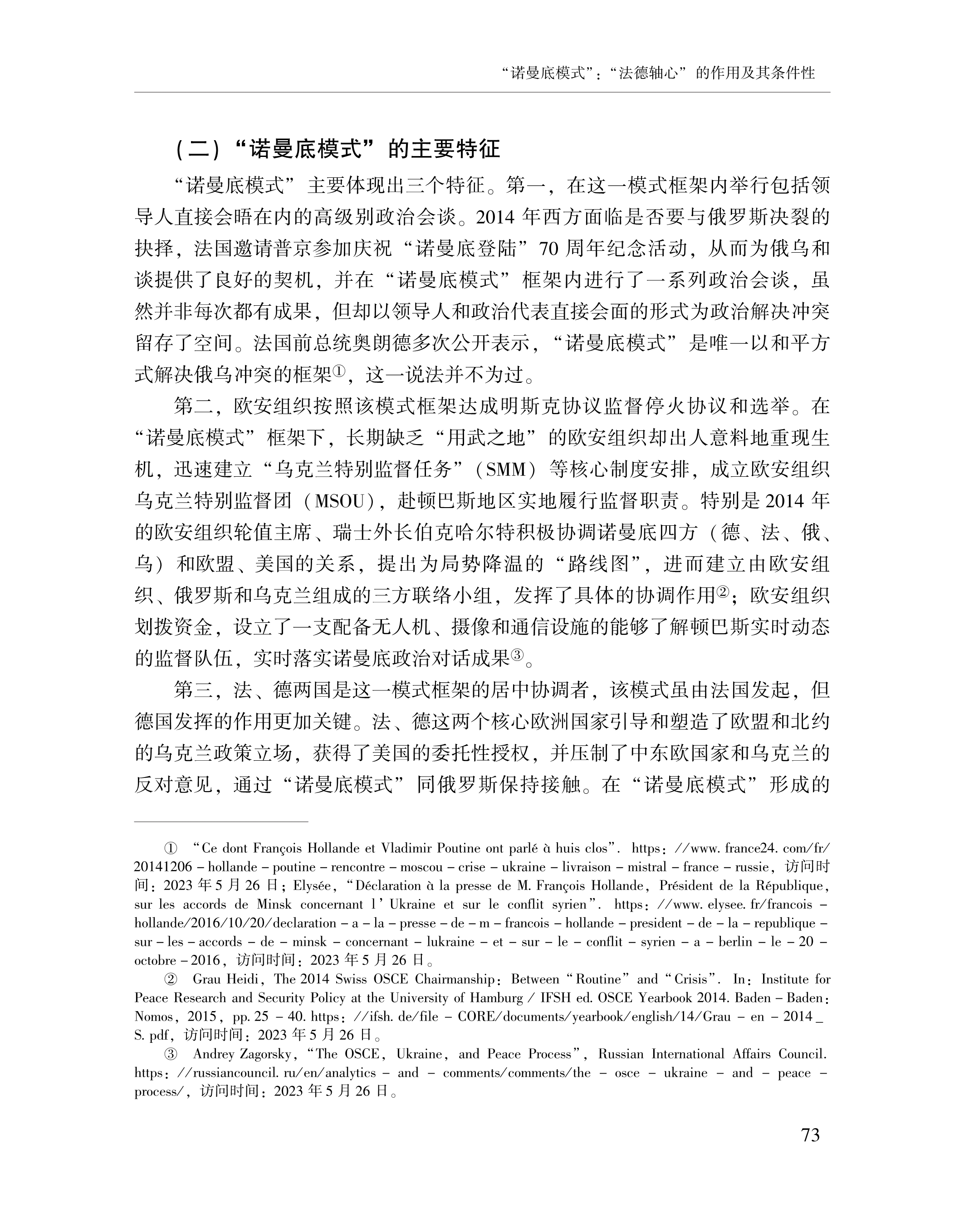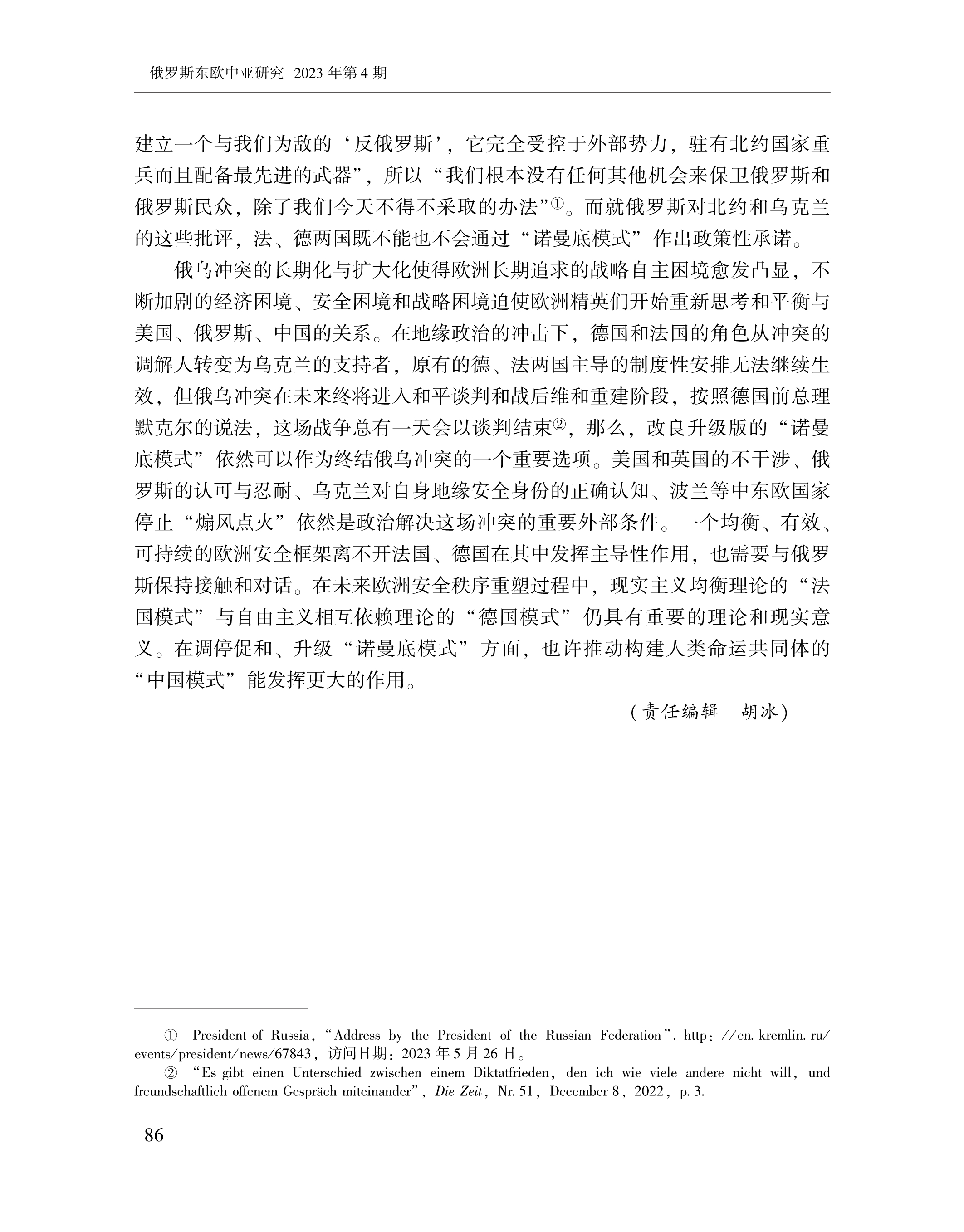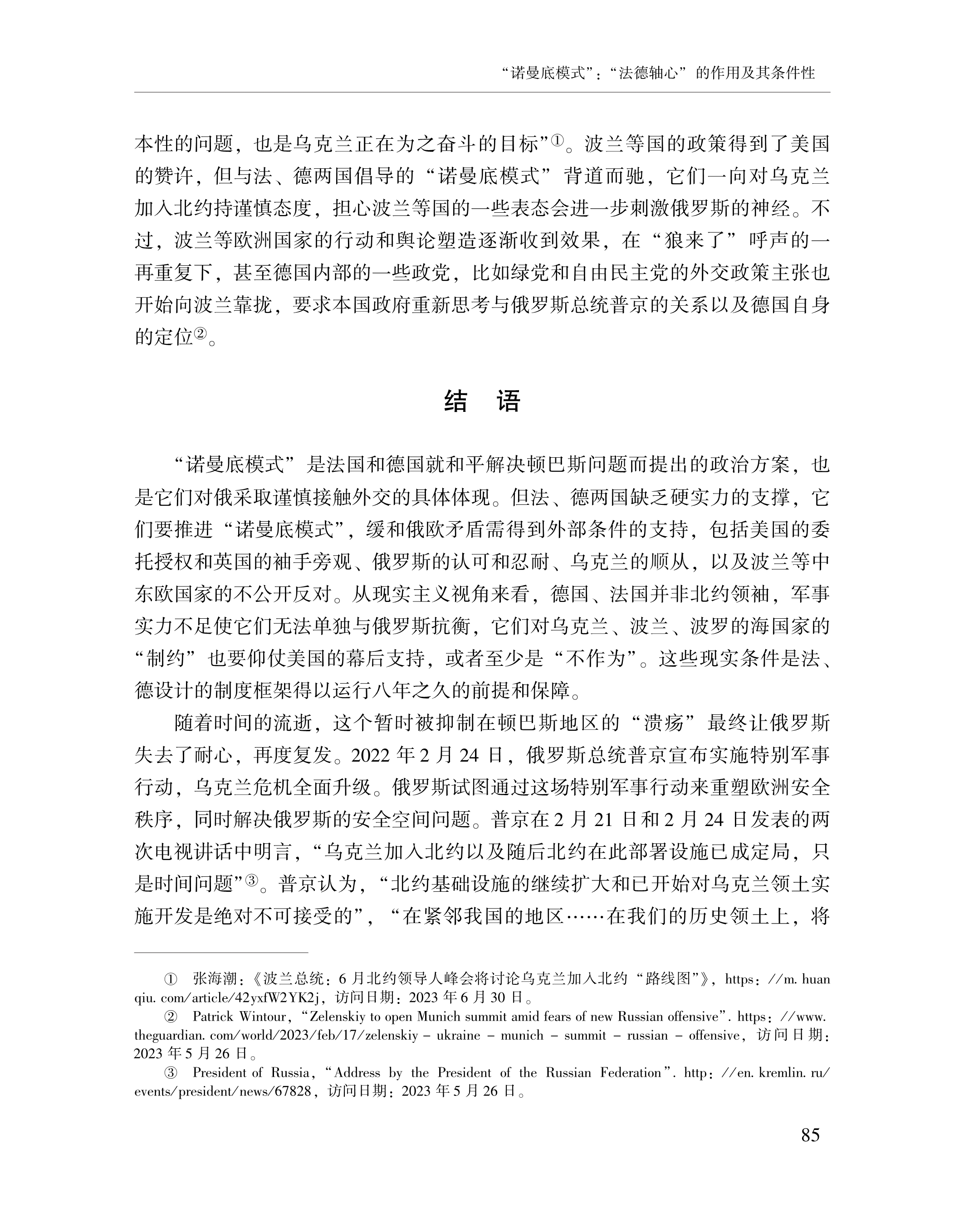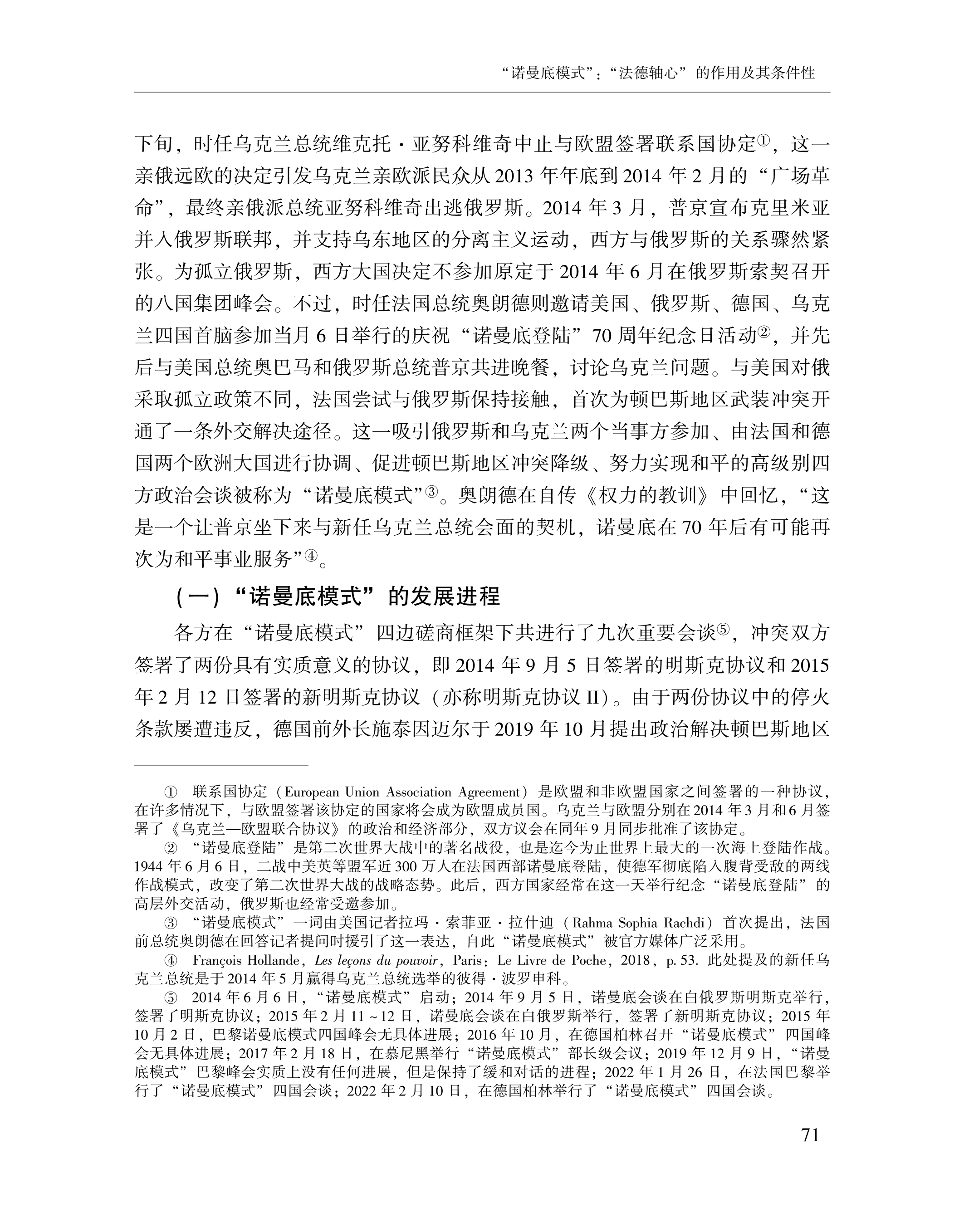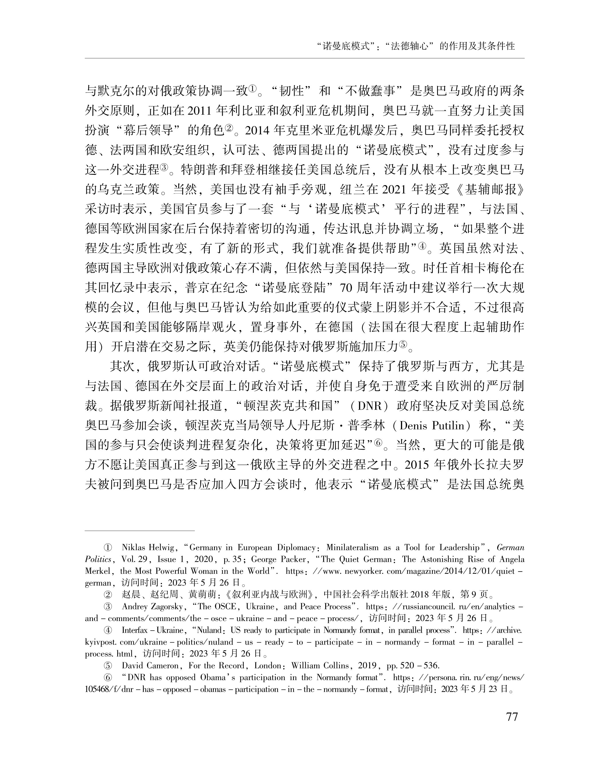 赵晨、黄颖、刘念:“诺曼底模式”:“法德轴心”的作用及其条件性 2023-07-24 赵晨、黄颖、刘念 《俄罗斯东欧中亚研究》,2023年第4期 0 作者简介: 赵晨,中国社会科学院欧洲研究所研究员。 黄颖,中国社会科学院欧洲研究所助理研究员、博士后。 刘念,中国社会科学院大学博士研究生。 文章来源:《俄罗斯东欧中亚研究》,2023年第4期。已获得作者授权。