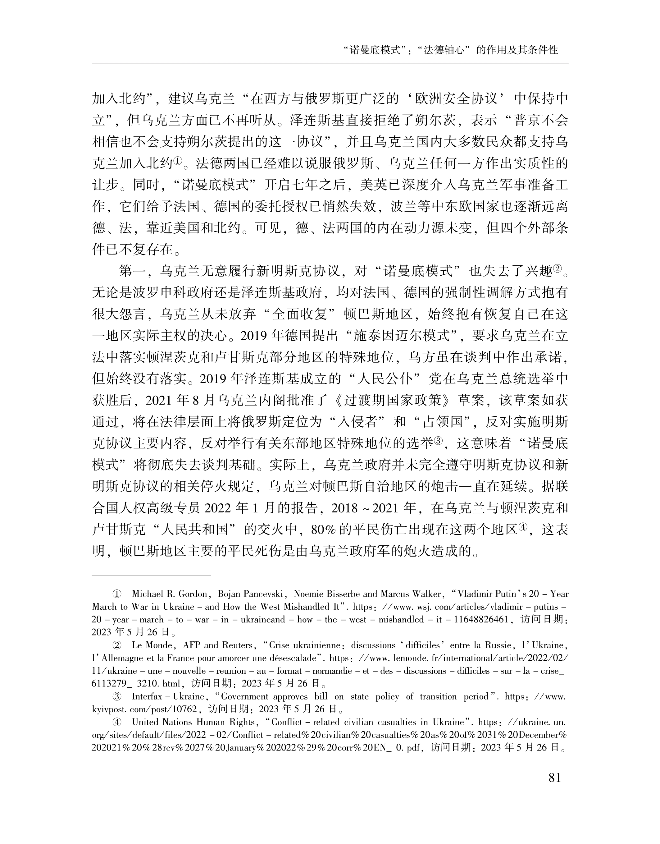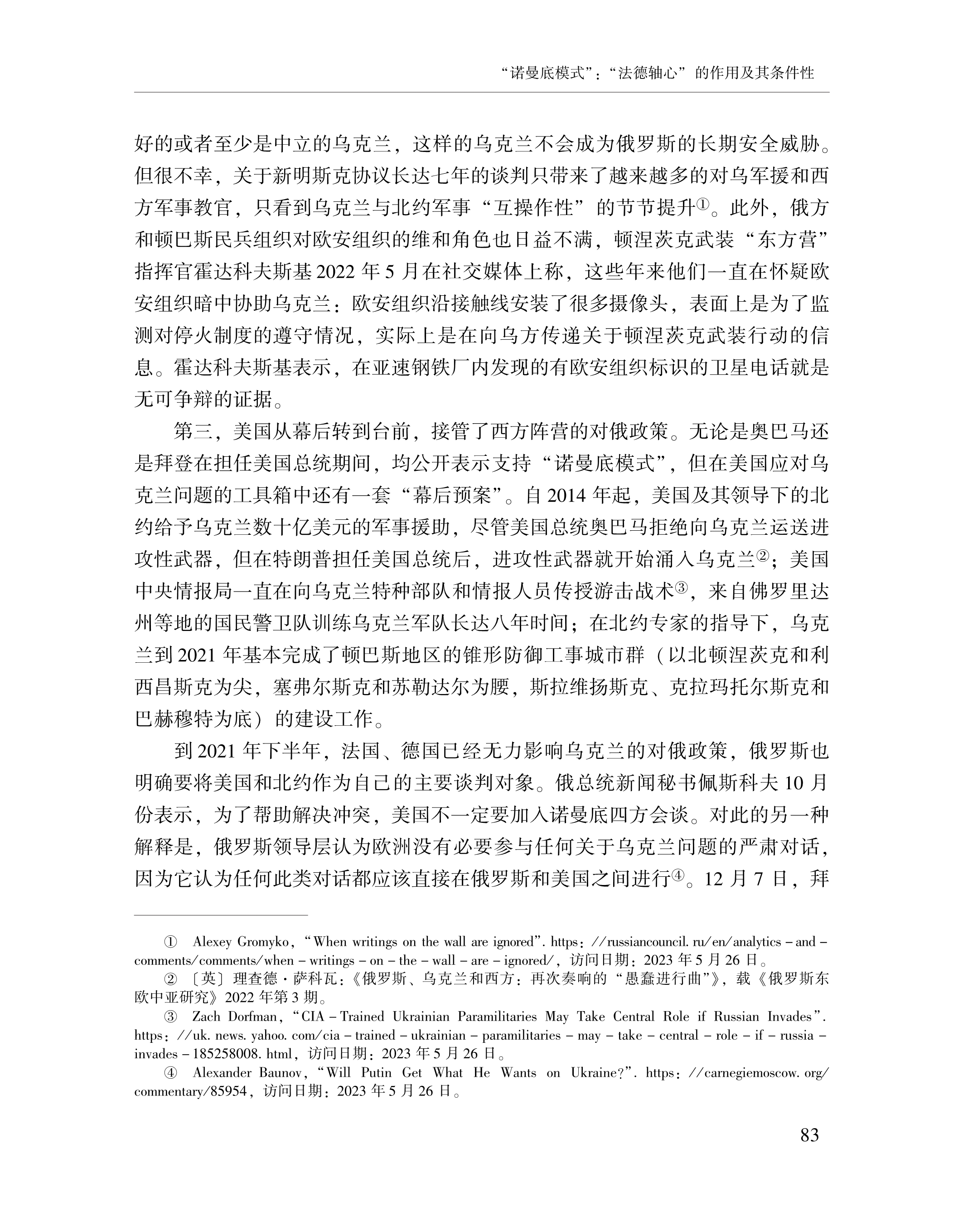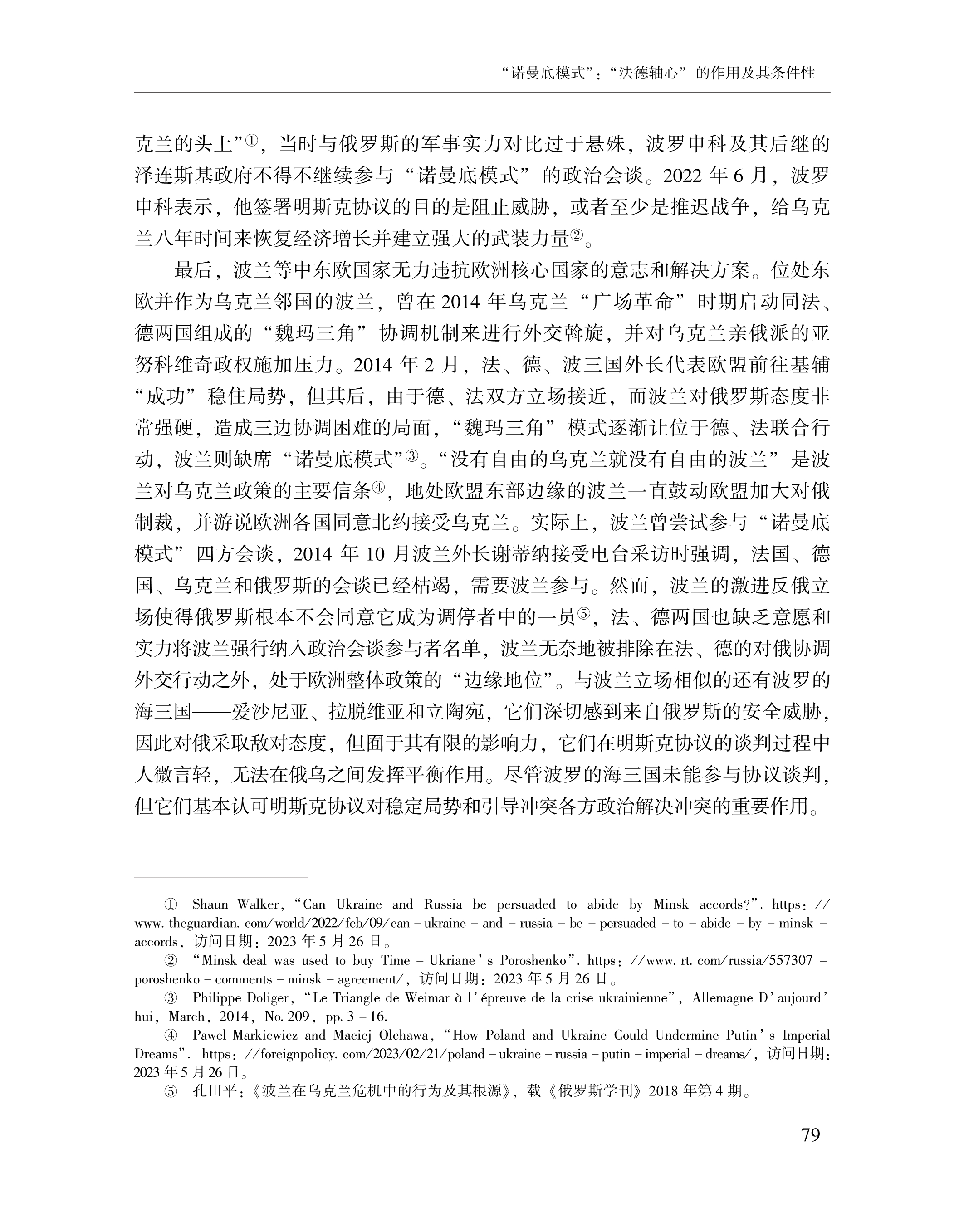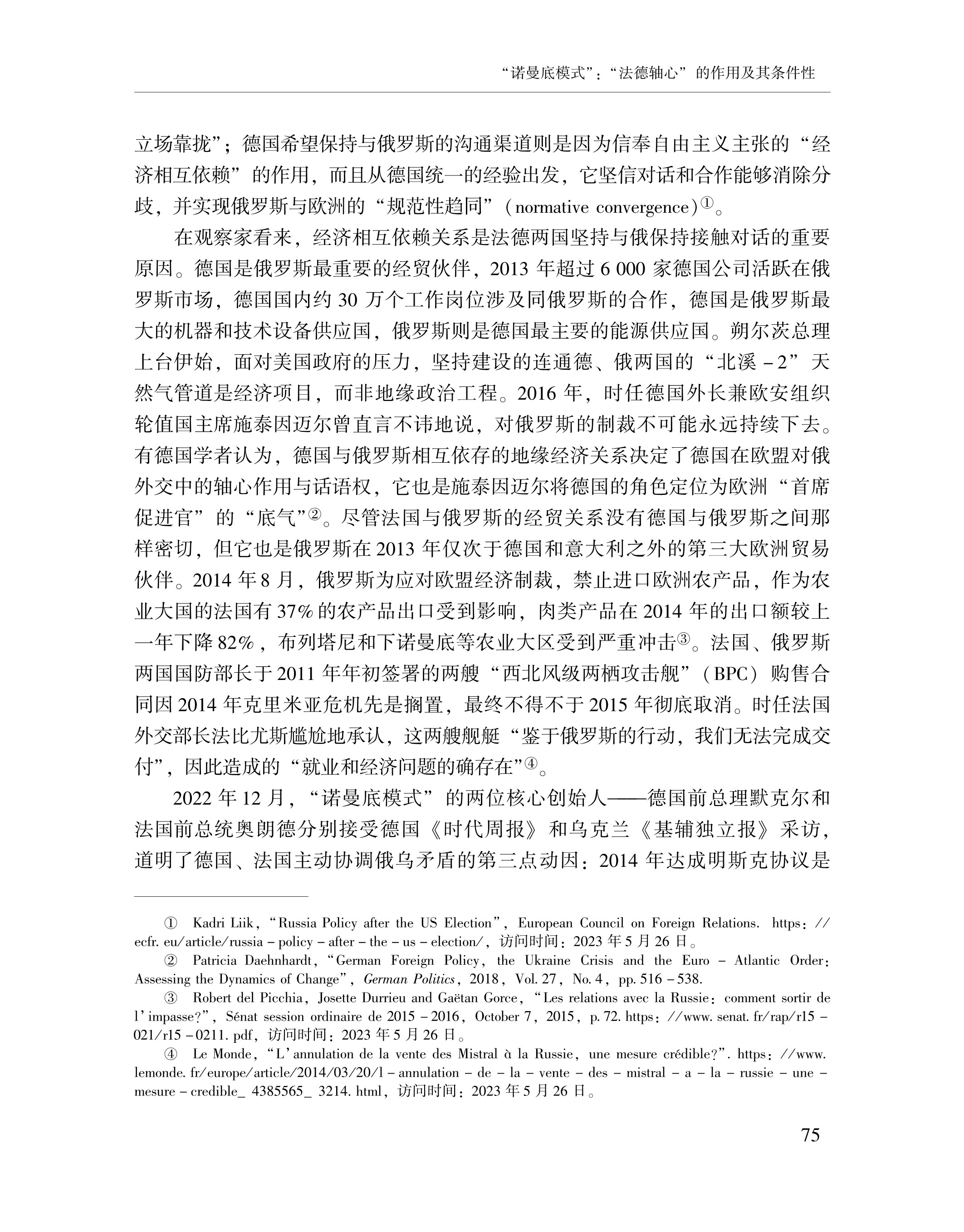 赵晨、黄颖、刘念:“诺曼底模式”:“法德轴心”的作用及其条件性 2023-07-24 赵晨、黄颖、刘念 《俄罗斯东欧中亚研究》,2023年第4期 0 作者简介: 赵晨,中国社会科学院欧洲研究所研究员。 黄颖,中国社会科学院欧洲研究所助理研究员、博士后。 刘念,中国社会科学院大学博士研究生。 文章来源:《俄罗斯东欧中亚研究》,2023年第4期。已获得作者授权。