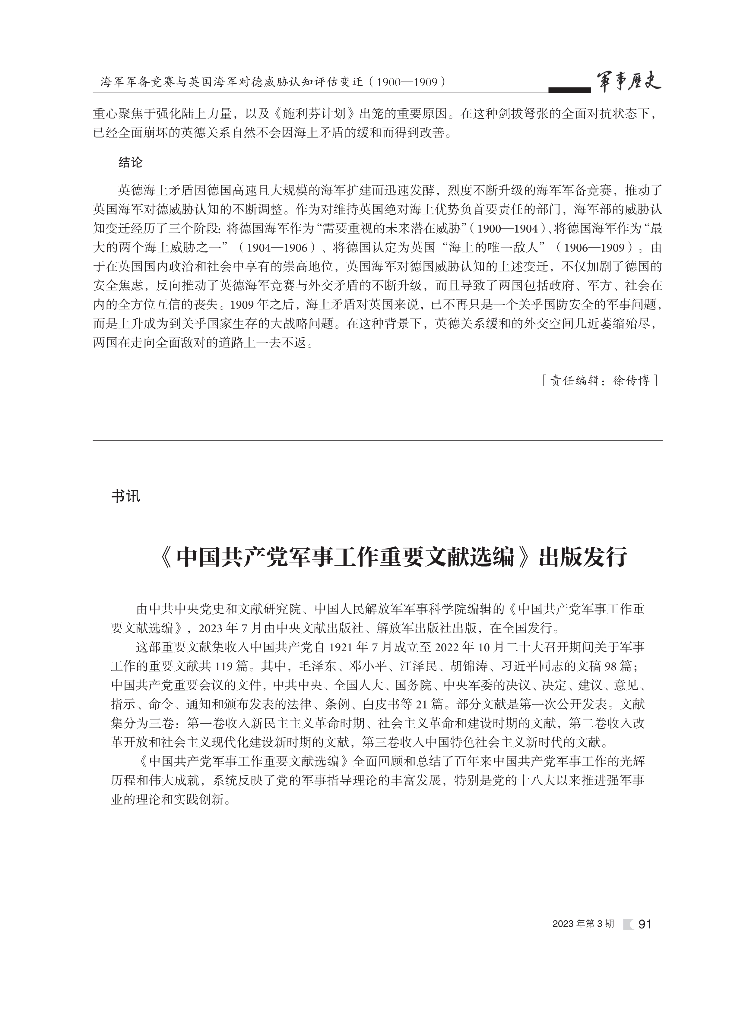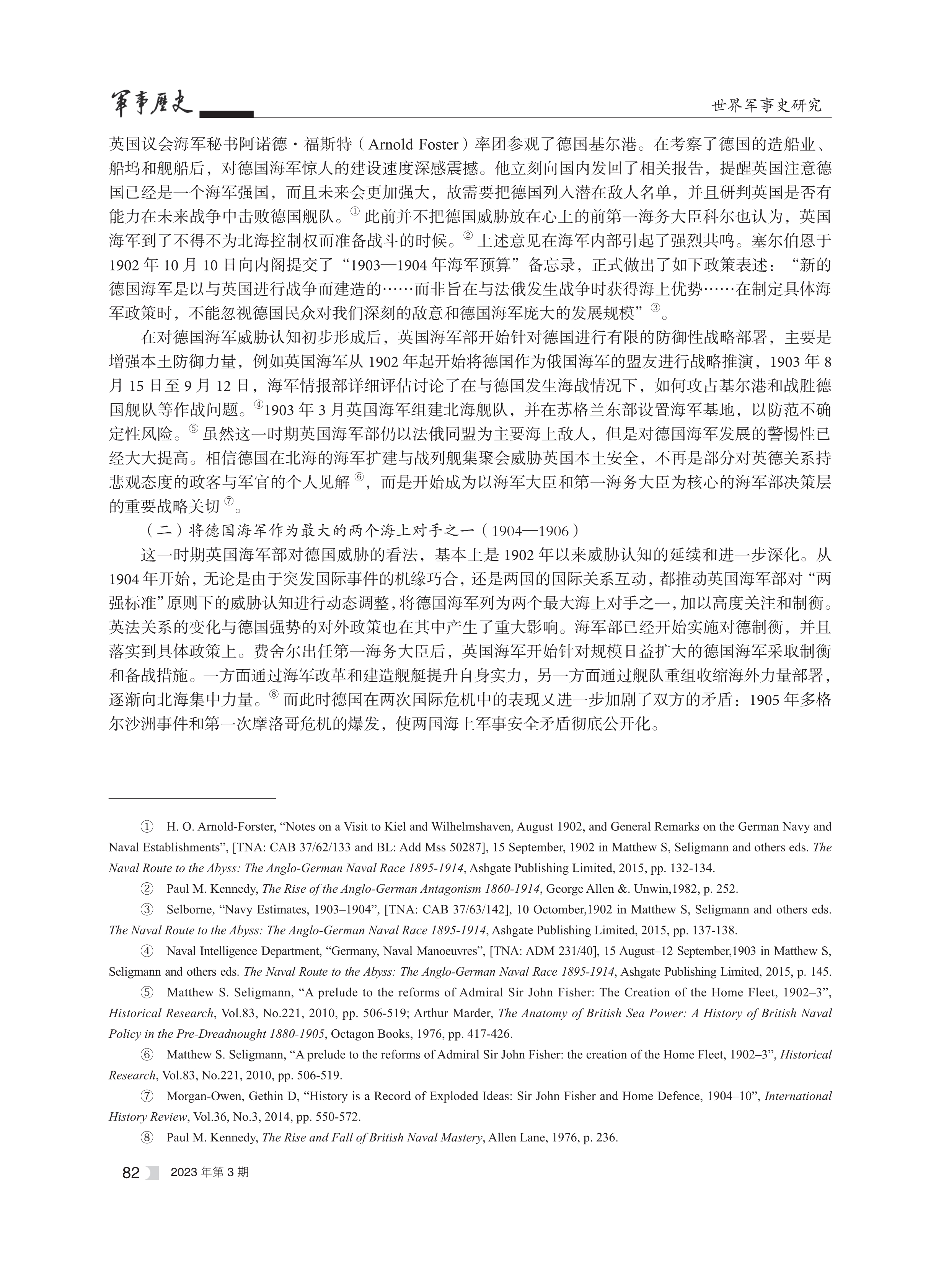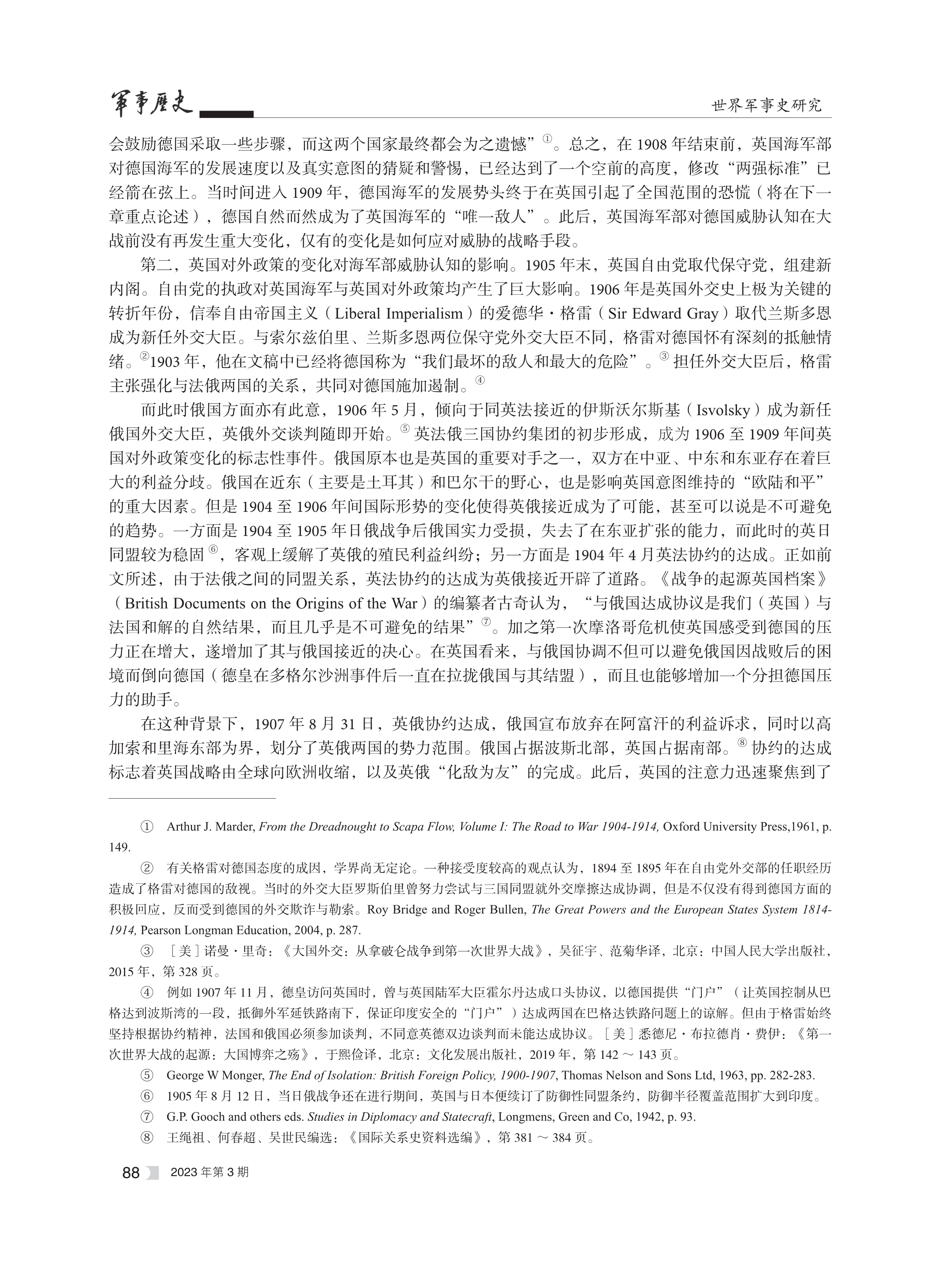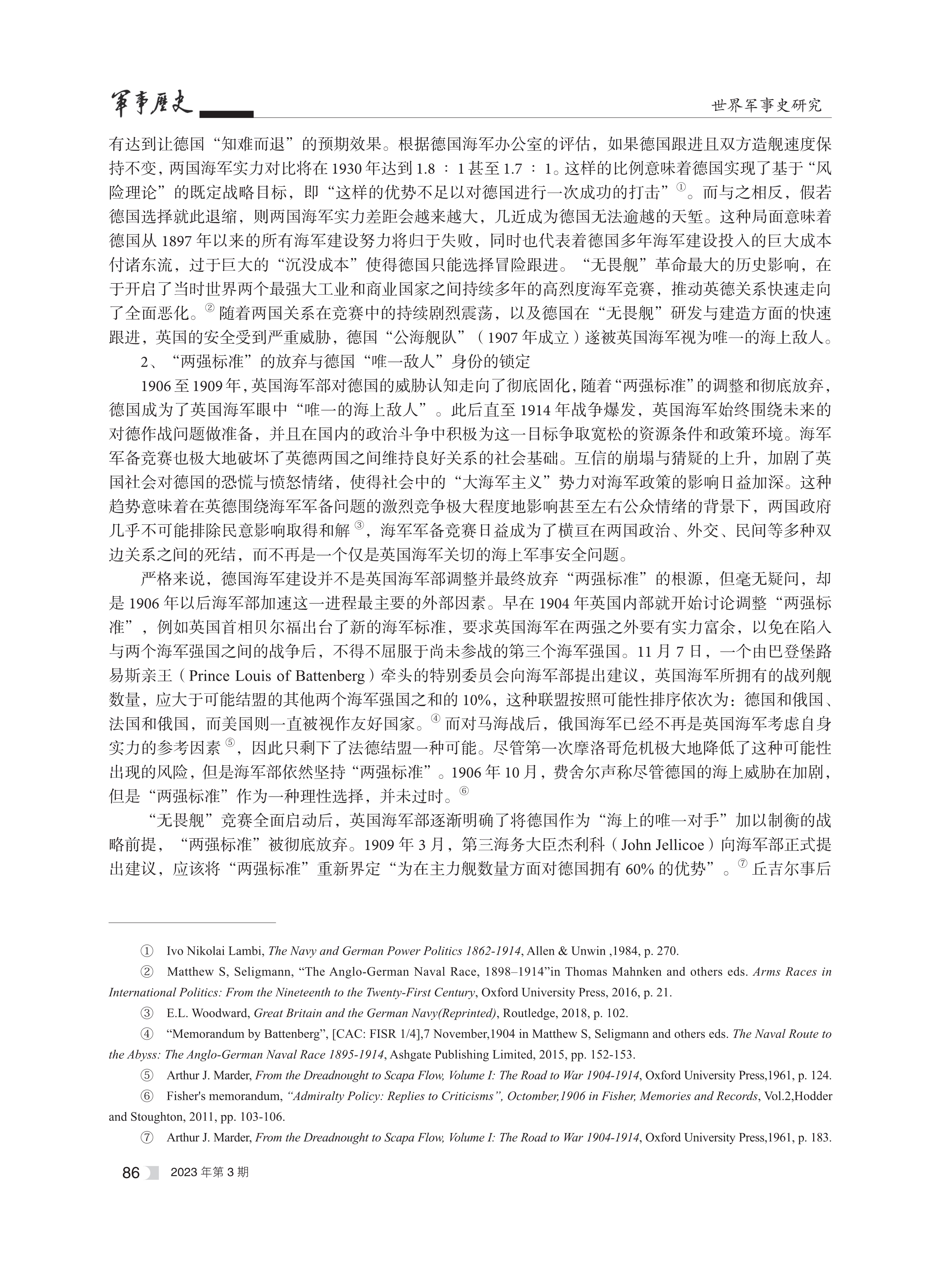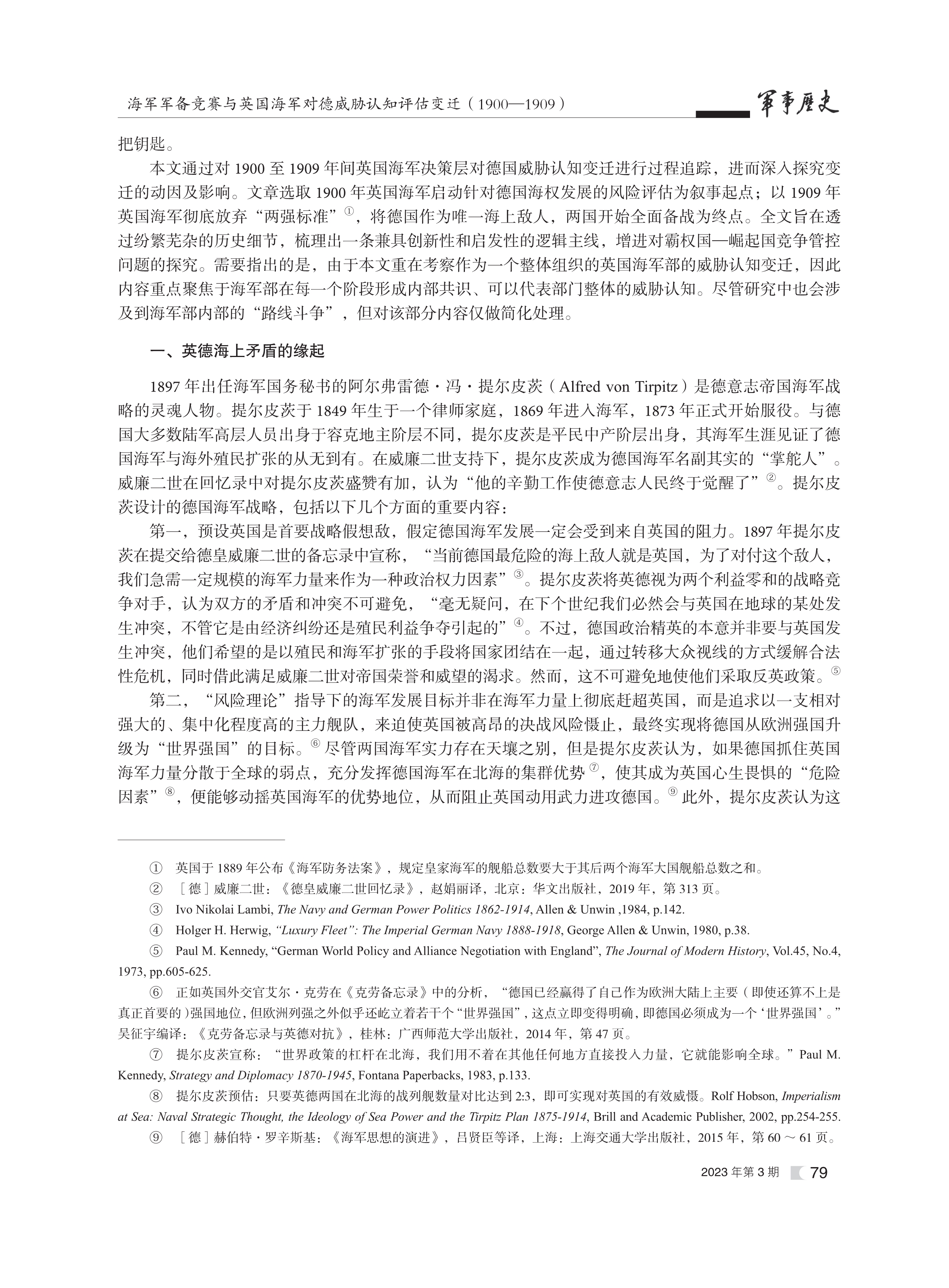 徐若杰:海军军备竞赛与英国海军对德威胁认知评估变迁(1900—1909) 2023-10-18 徐若杰 《军事历史》,2023年第3期 0 作者简介:徐若杰,中国社会科学院欧洲研究所助理研究员。 文章来源:《军事历史》,2023年第3期。已获得作者授权。