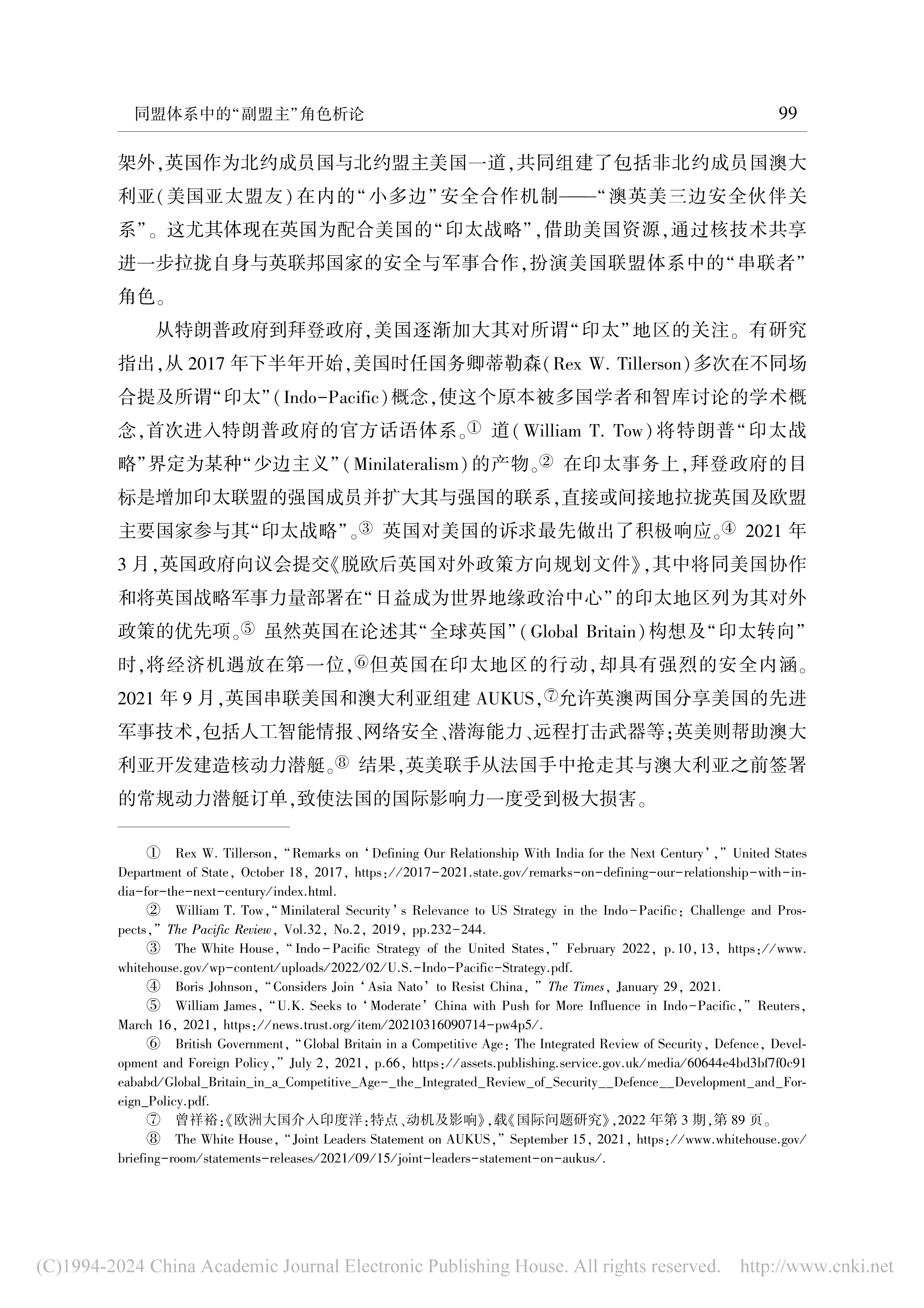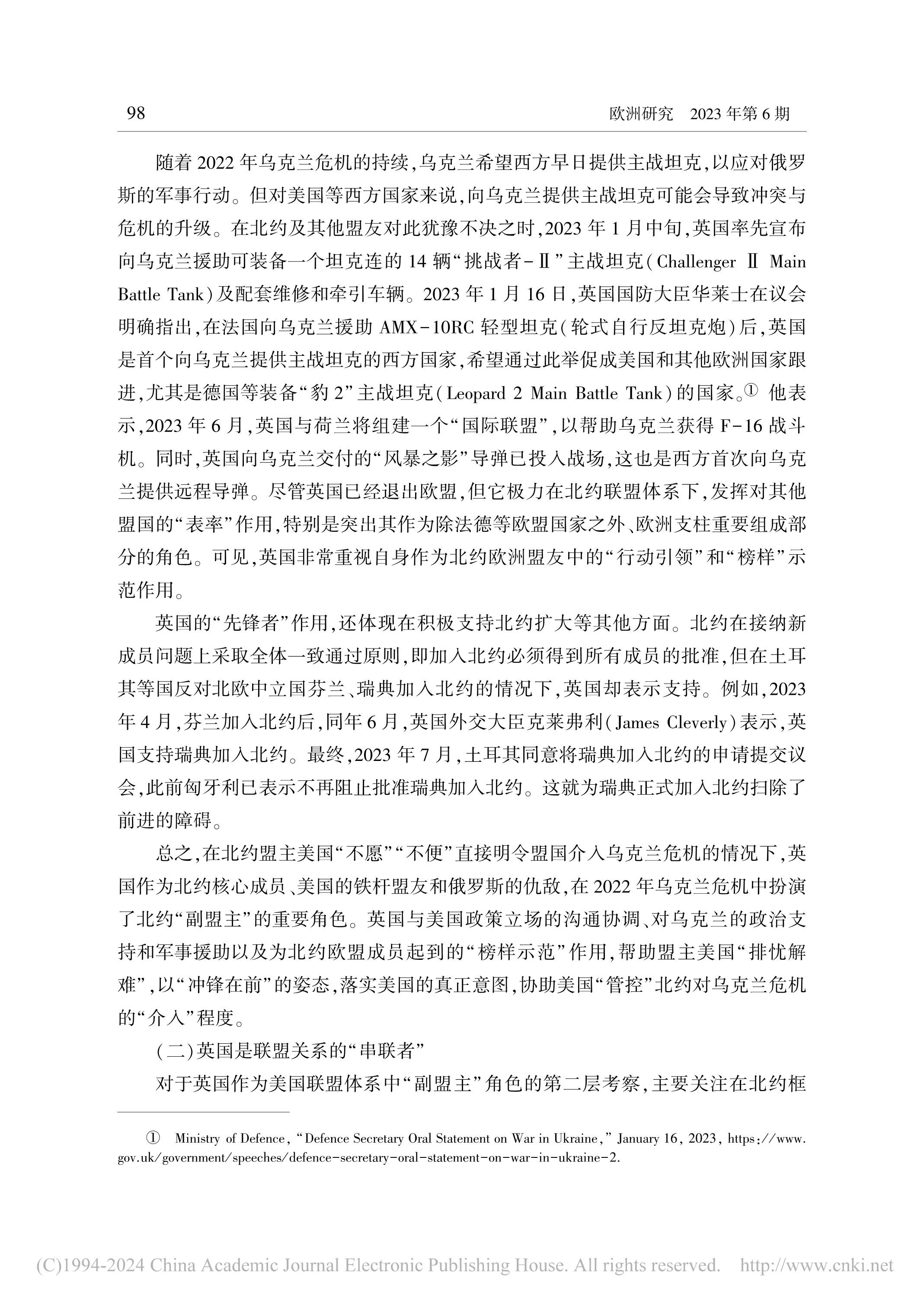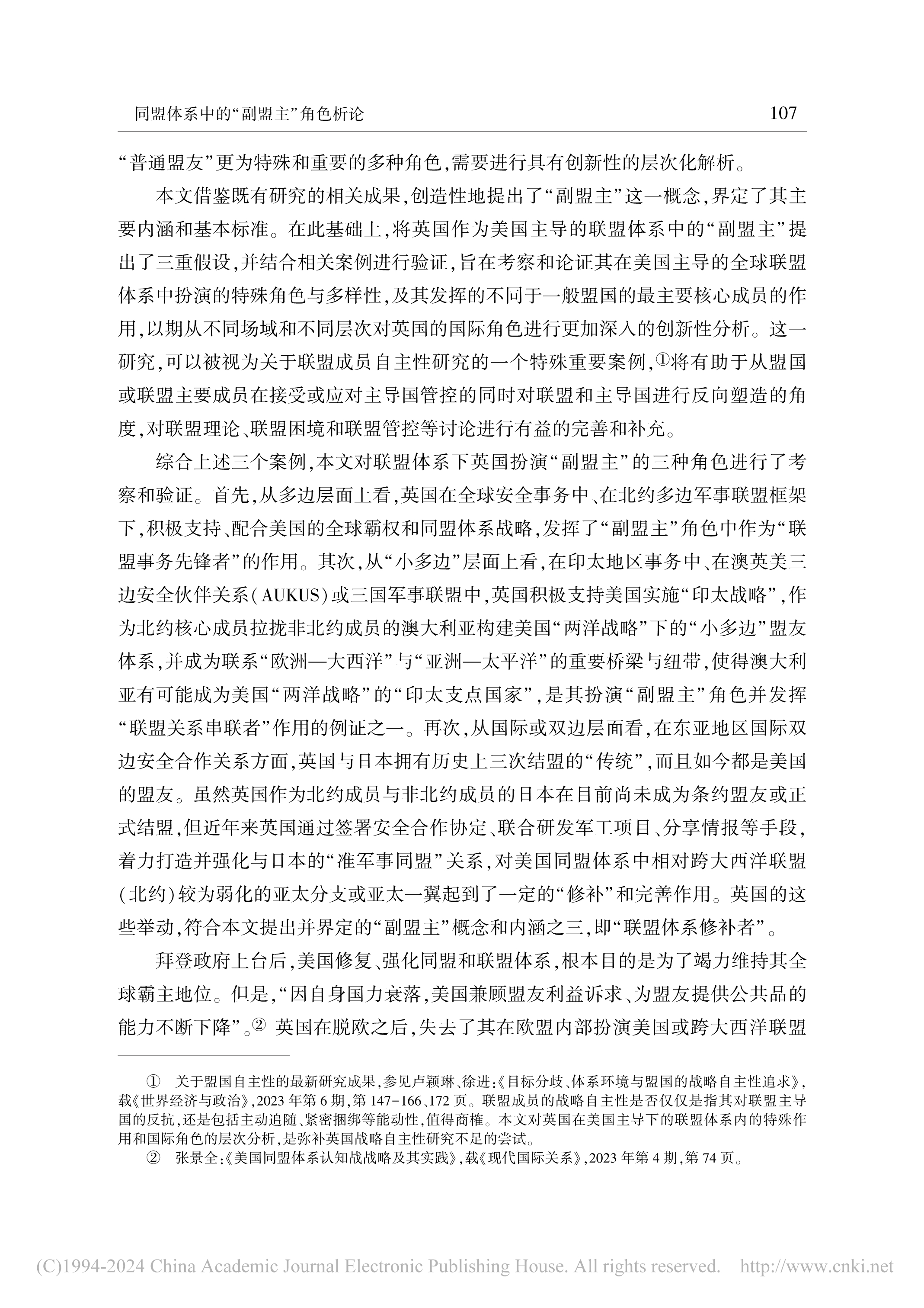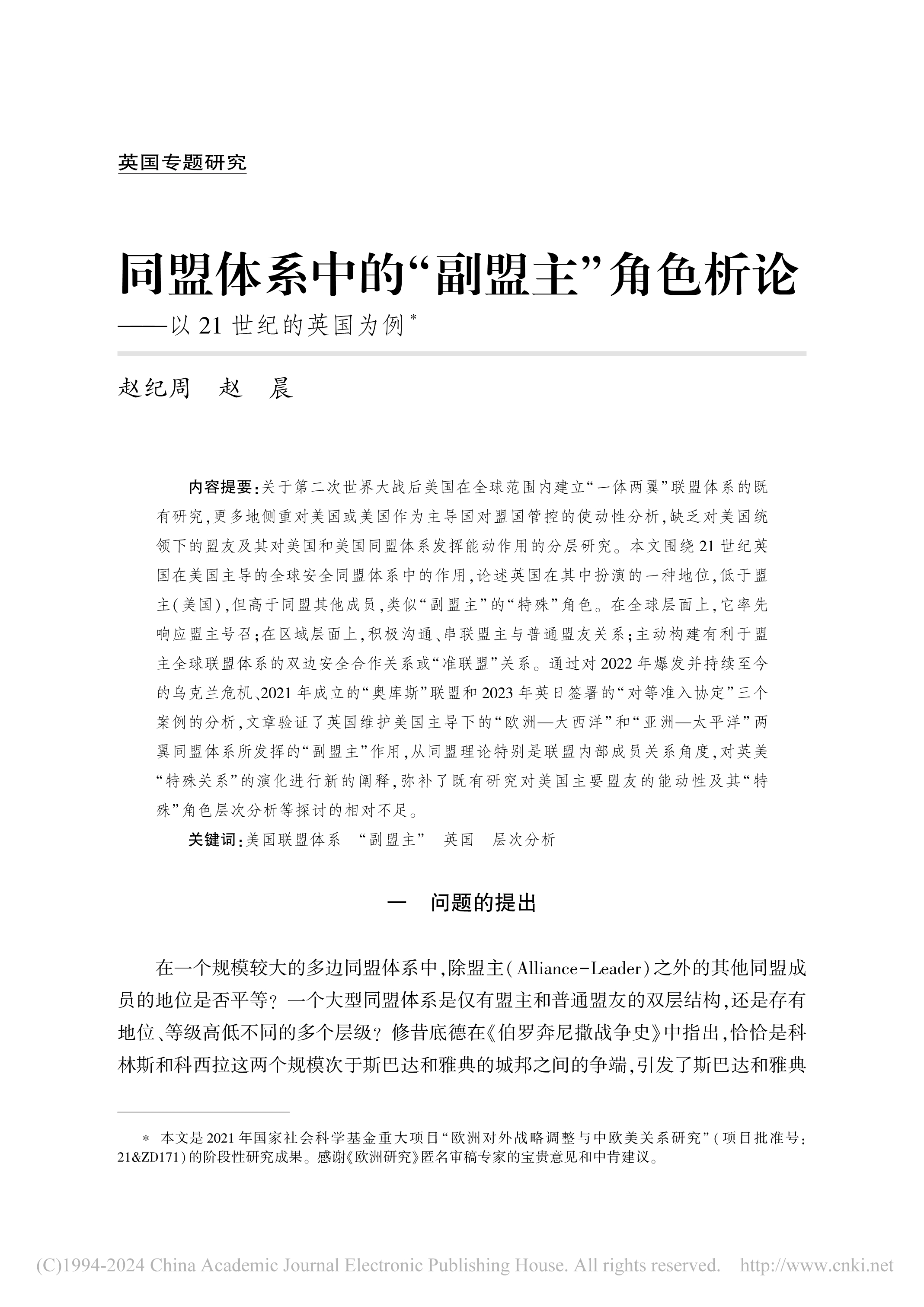 赵纪周、赵晨:同盟体系中的“副盟主”角色析论——以21世纪的英国为例 2024-09-18 赵纪周、赵晨 《欧洲研究》2023年第6期 0 作者简介: 赵纪周,中国社会科学院欧洲研究所助理研究员。 赵晨,中国社会科学院欧洲研究所欧洲国际关系研究室主任、研究员。 文章来源:《欧洲研究》2023年第6期。已获得作者授权。