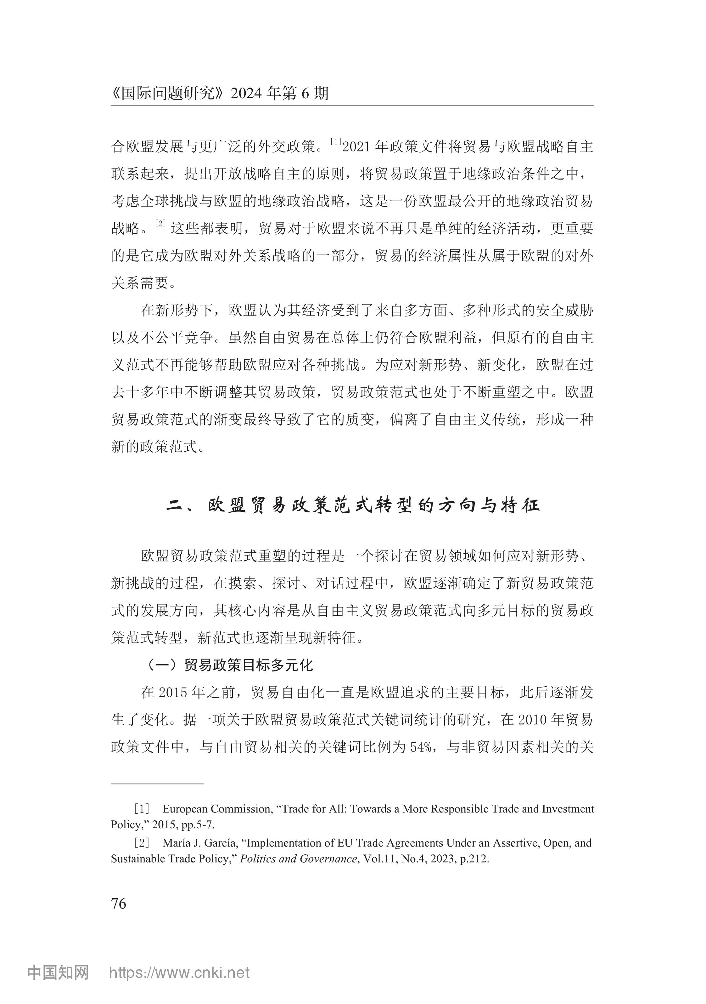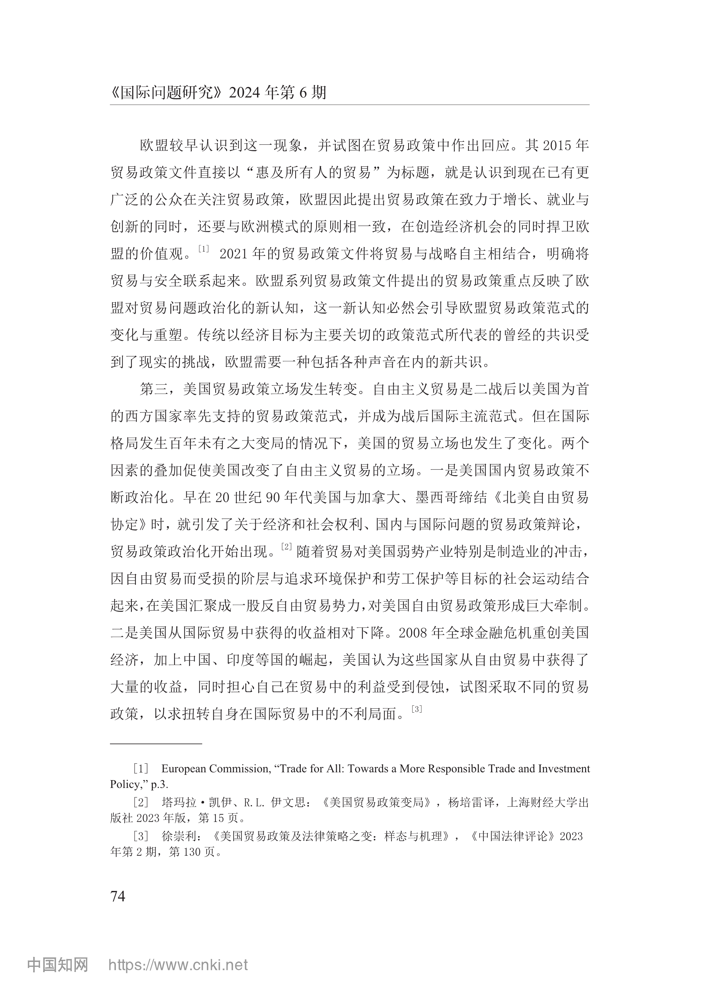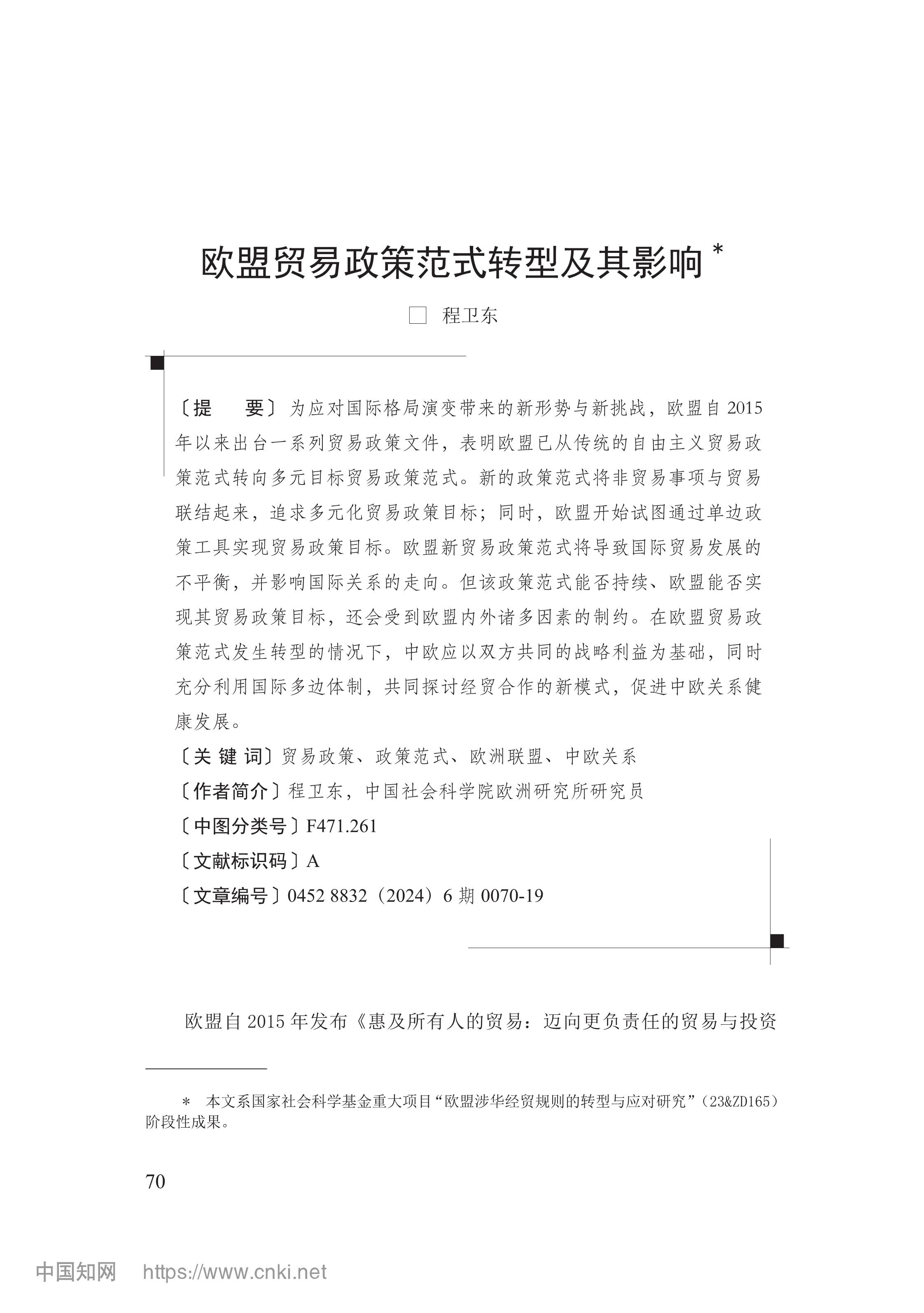 程卫东:欧盟贸易政策范式转型及其影响 2025-02-17 程卫东 《国际问题研究》2024年第6期 0 作者简介:程卫东,中国社会科学院欧洲研究所研究员。 文章来源:《国际问题研究》2024年第6期。已获得作者授权。