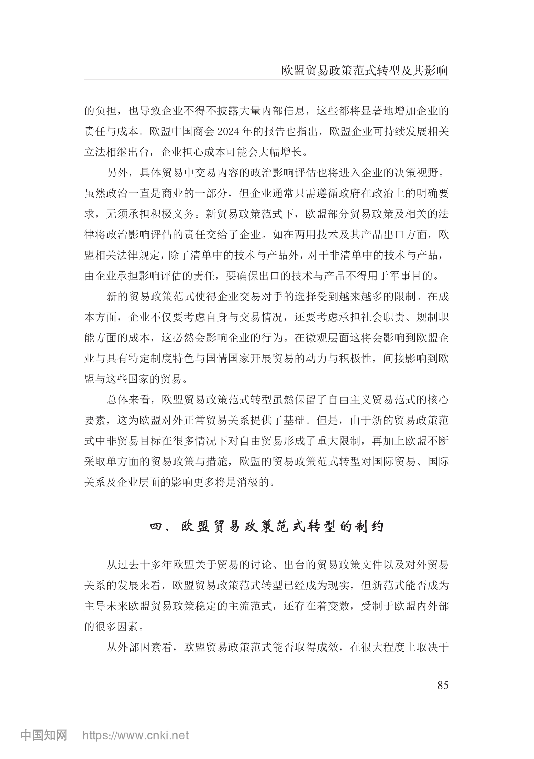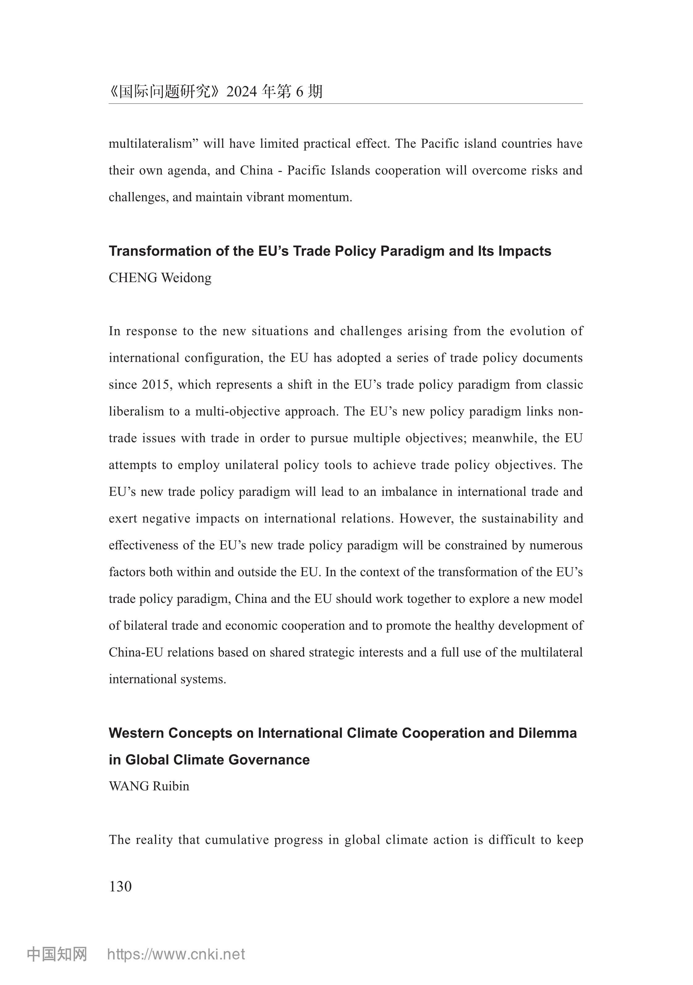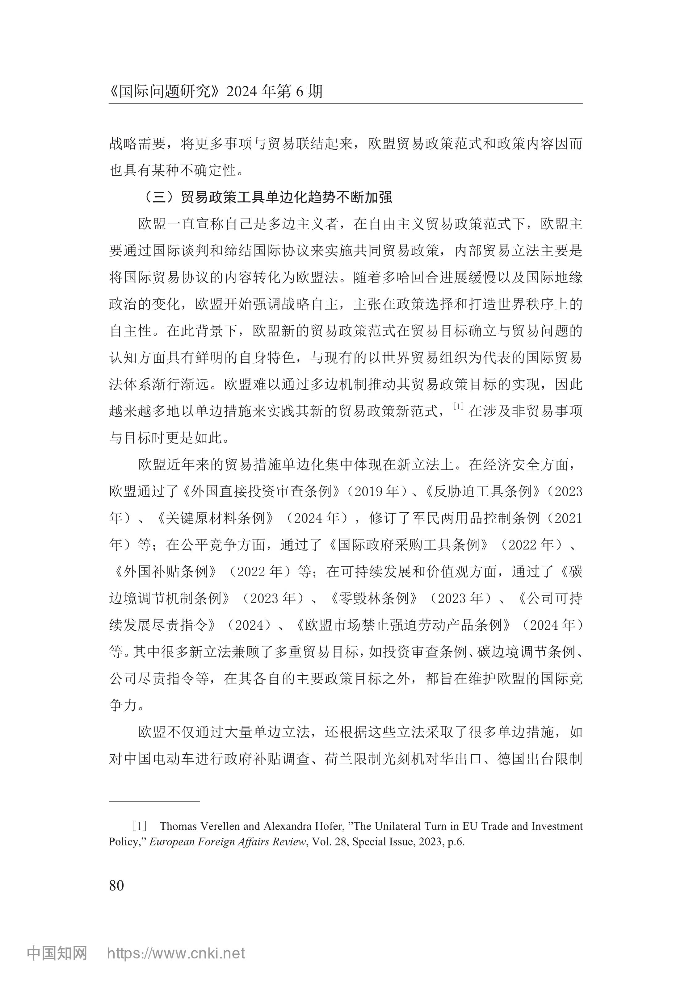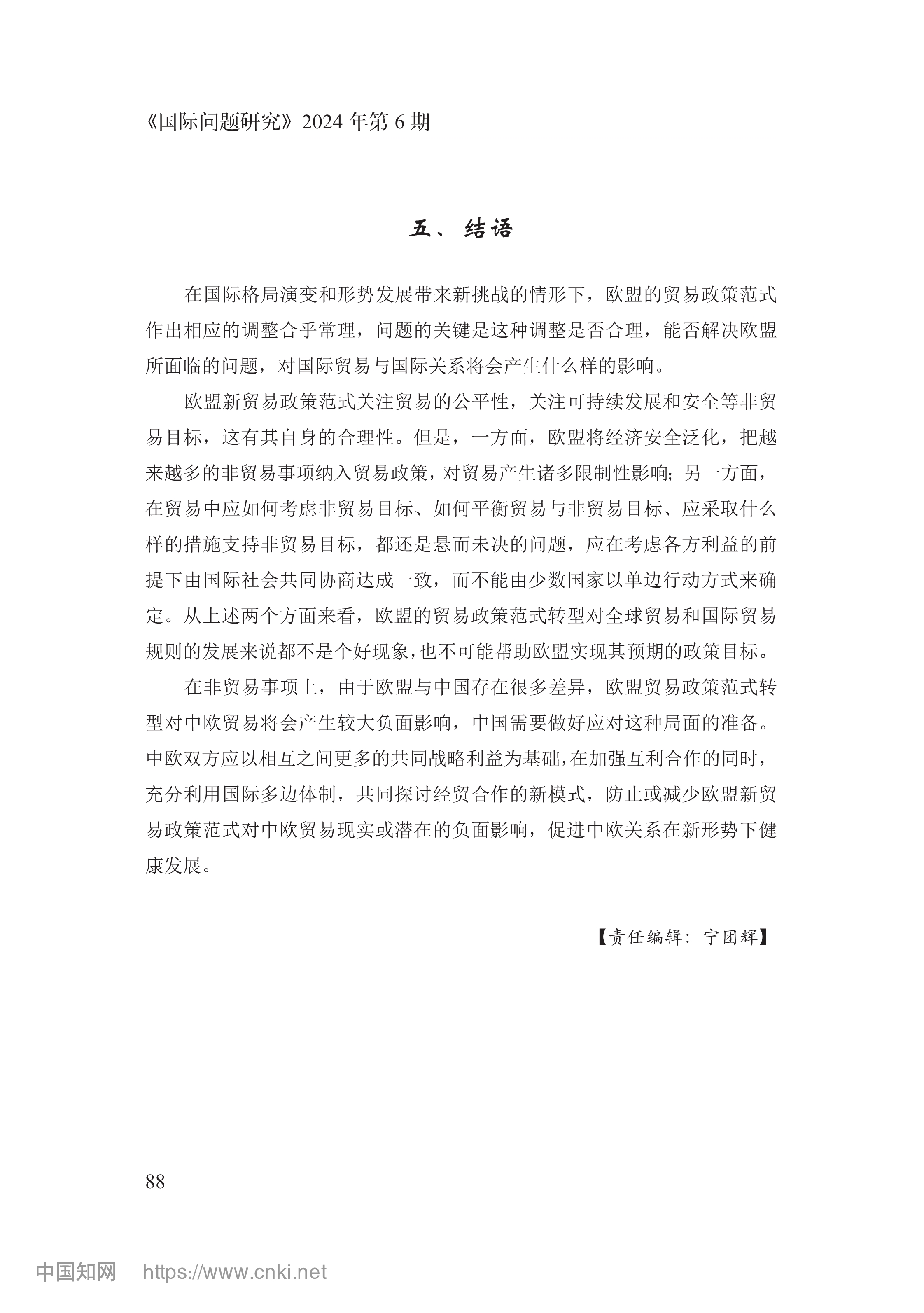 程卫东:欧盟贸易政策范式转型及其影响 2025-02-17 程卫东 《国际问题研究》2024年第6期 0 作者简介:程卫东,中国社会科学院欧洲研究所研究员。 文章来源:《国际问题研究》2024年第6期。已获得作者授权。
