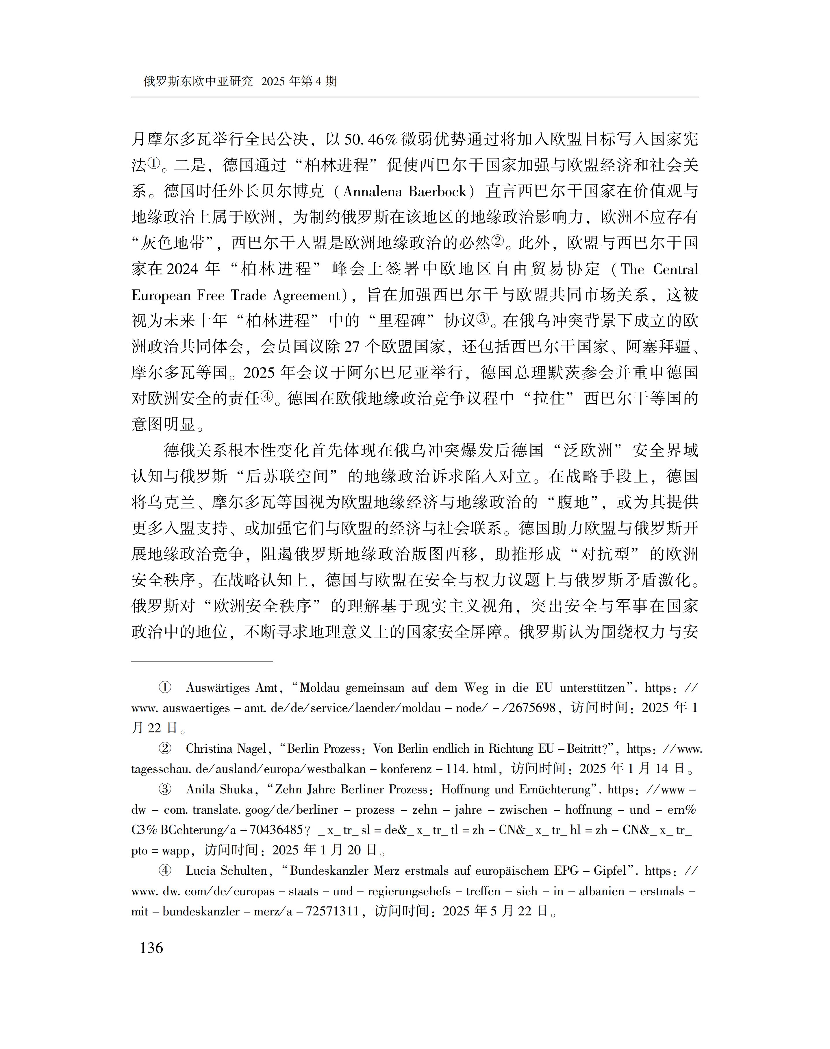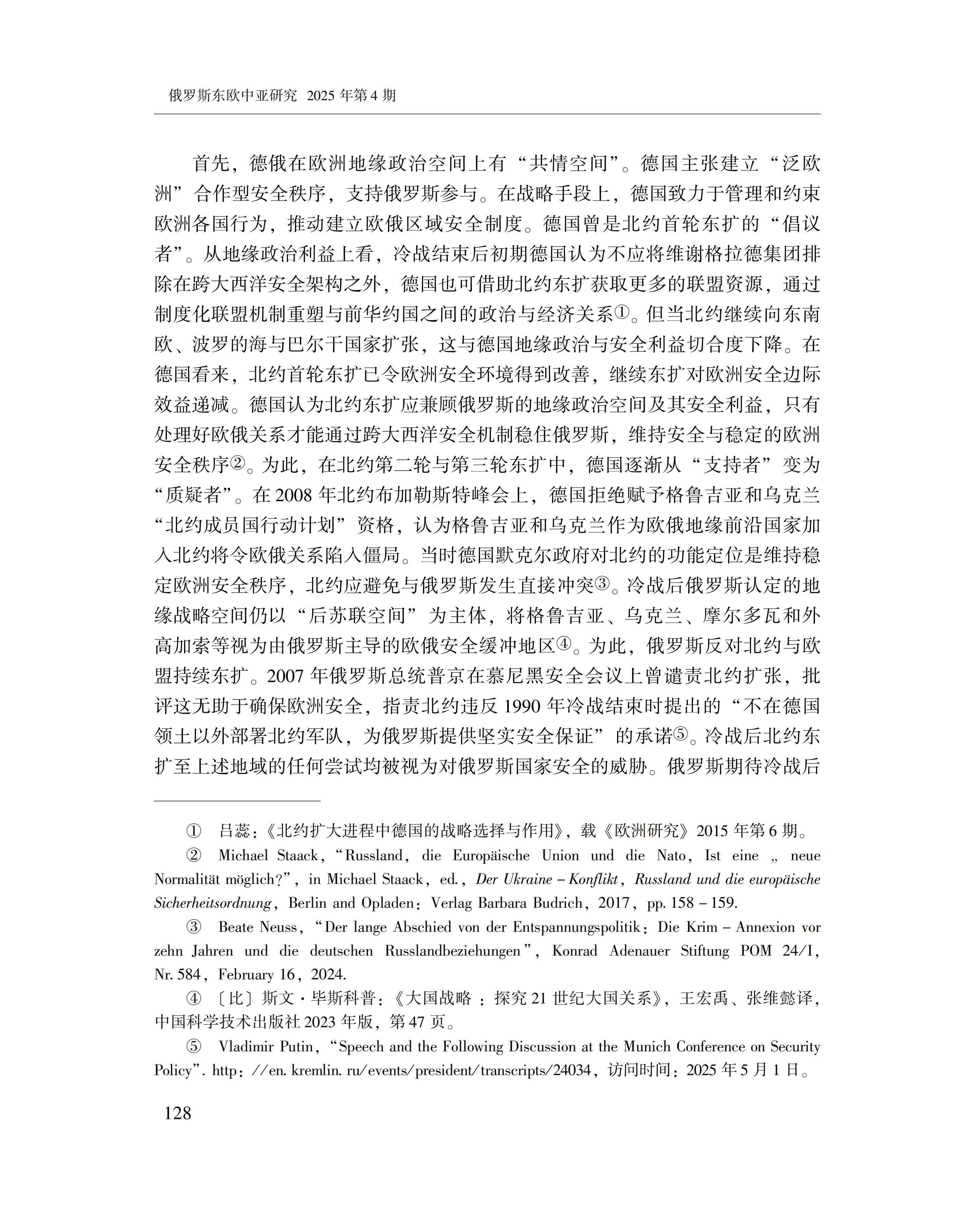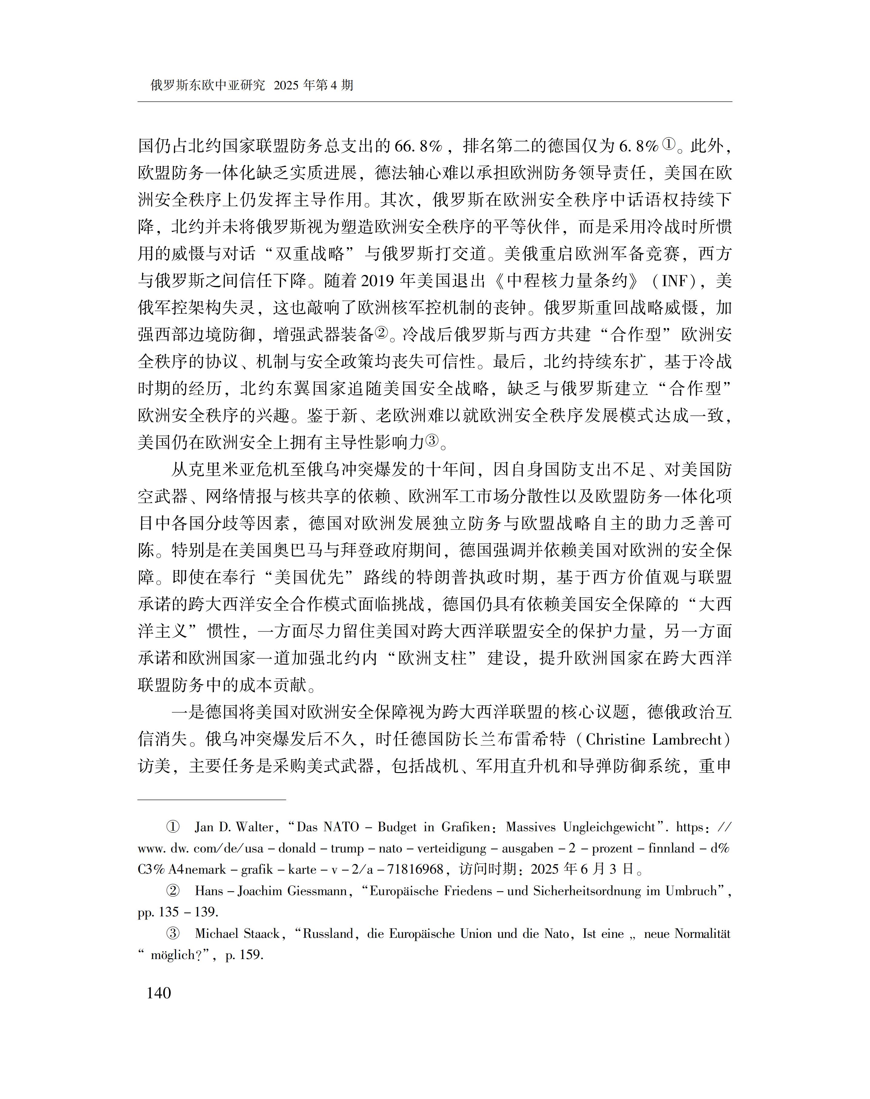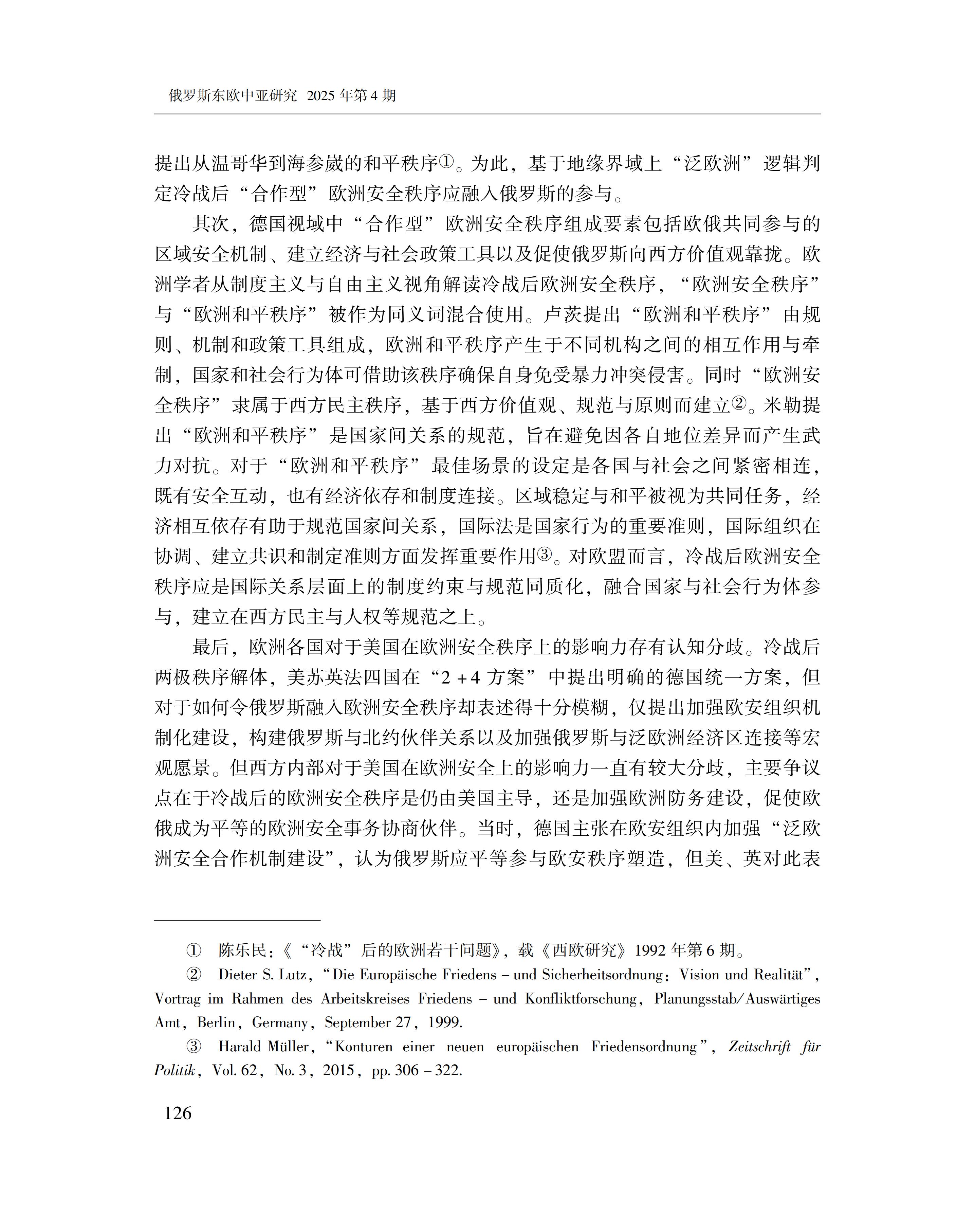 黄萌萌:德俄关系与欧洲安全秩序的变化 2025-09-23 黄萌萌 《俄罗斯东欧中亚研究》2025年第4期 0 作者简介:黄萌萌,中国社会科学院欧洲研究所副研究员。 文章来源:《俄罗斯东欧中亚研究》2025年第4期。已获得作者授权。