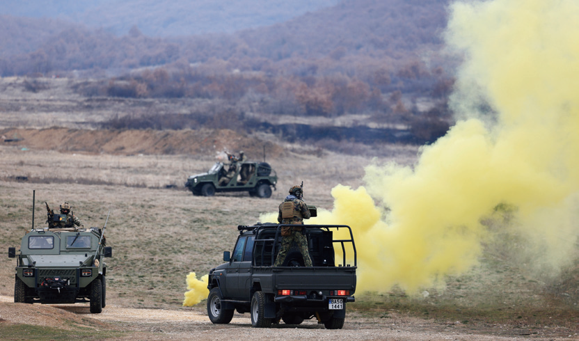 2025年2月13日,北约“坚定飞镖-2025”军事演习在保加利亚、罗马尼亚和希腊三国进行,共有包括希腊、保加利亚、法国、西班牙等9国约1万名军事人员参演。(epa/IC photo)