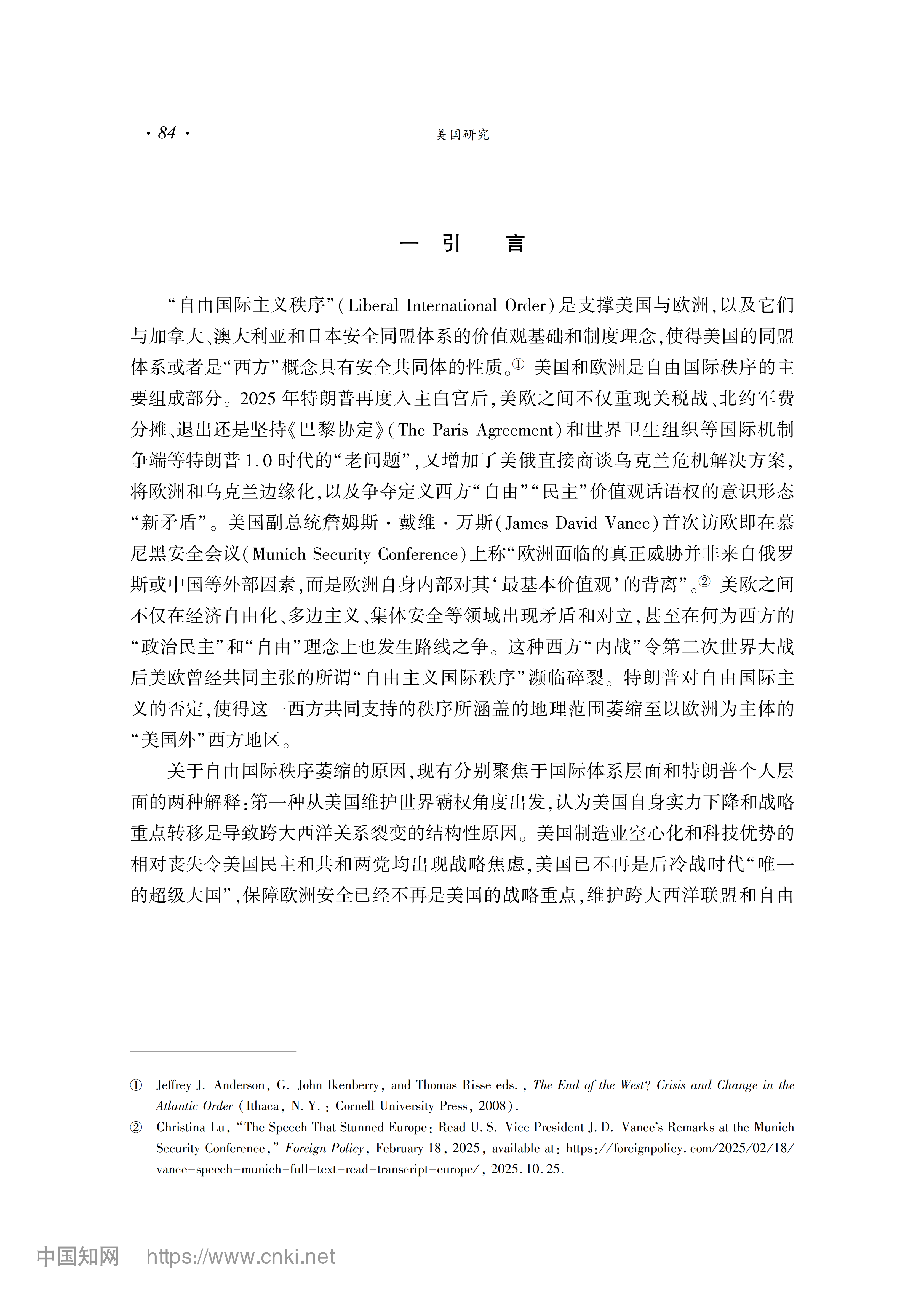 赵晨:自由主义国际秩序为何萎缩:美欧政党政治比较的视角 2026-01-28 赵晨 《美国研究》2025年第6期 0 作者简介:赵晨,中国社会科学院欧洲研究所国际关系研究室主任、研究员。 文章来源:《美国研究》2025年第6期。已获得作者授权。