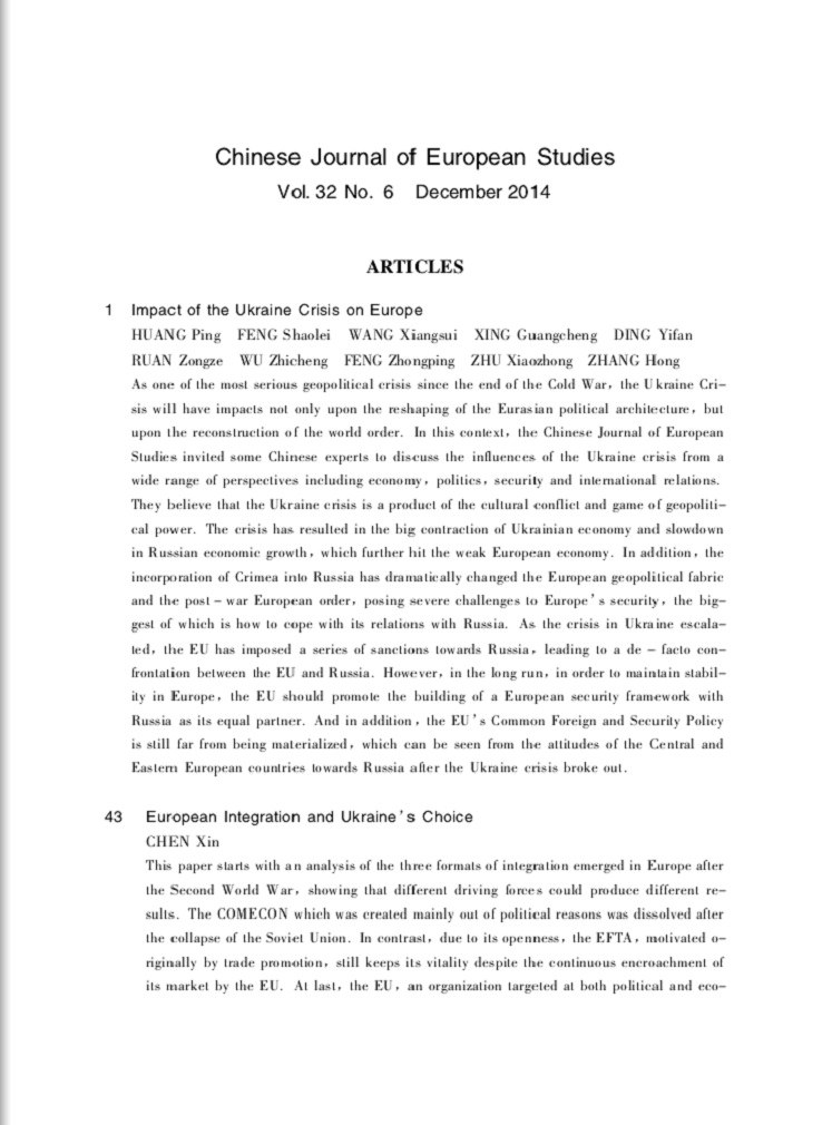 Chinese Journal of European Studies No.6 ,2014