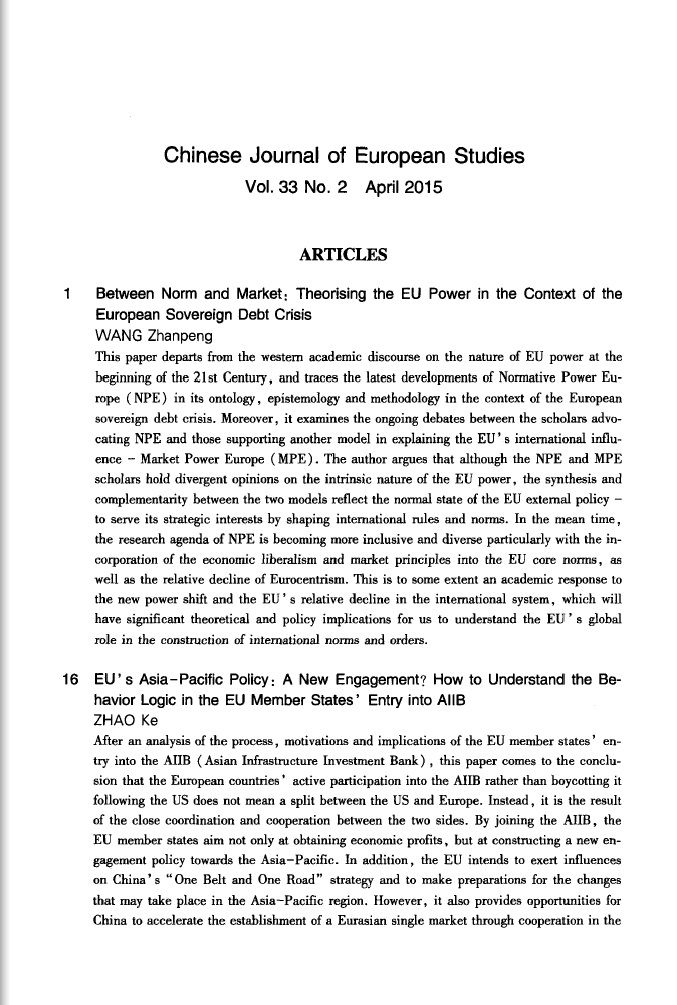 The Institute of European Studies of the Chinese Academy of Social Sciences (formerly the Institute of Western European Studies) was established in May 1981. It is a national research institute specializing in the study of European politics, economy, law, society, culture, history, international relations, and major power strategies.