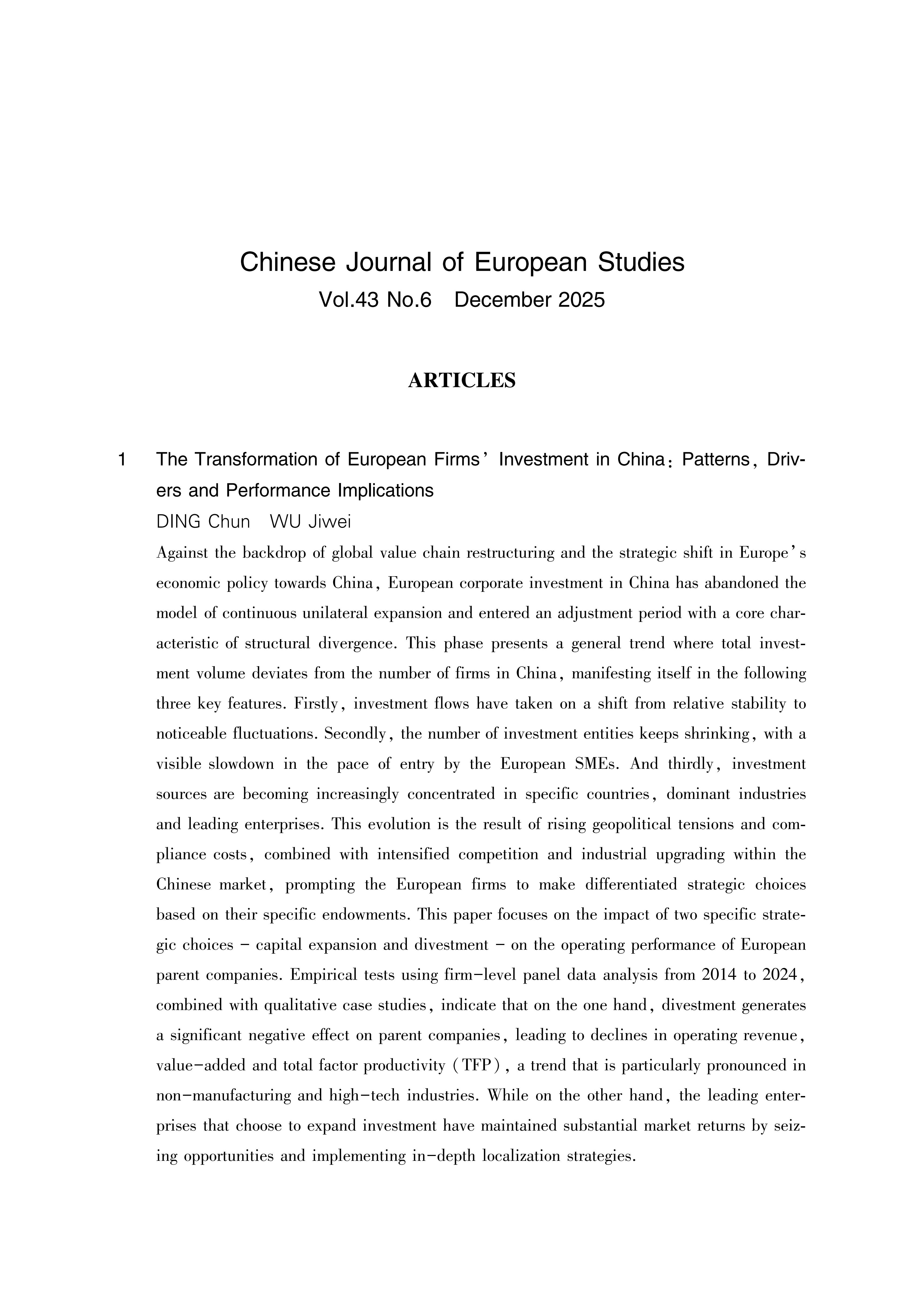 Chinese Journal of European Studies Vol.43 No.6 December 2025