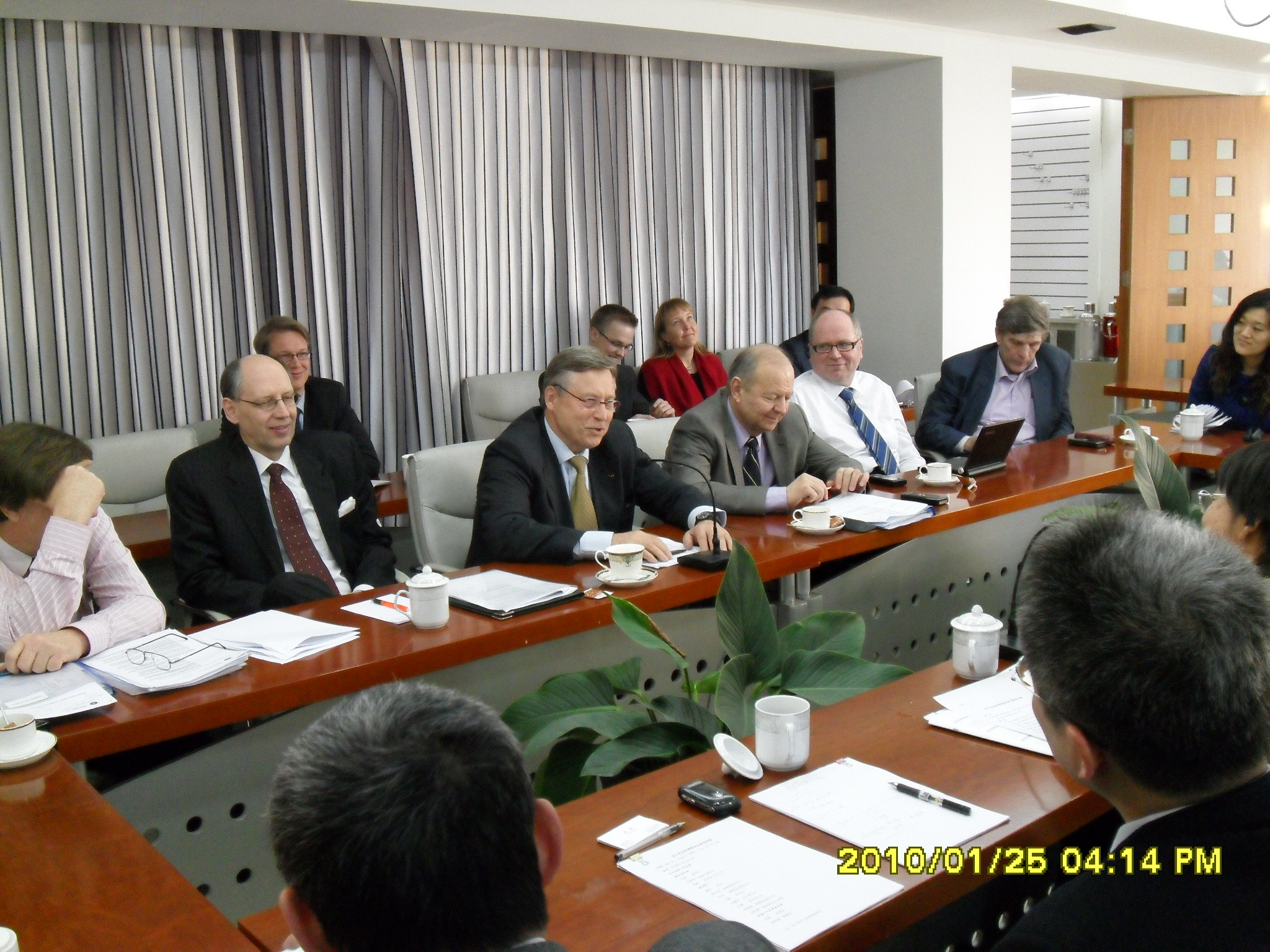 The delegation came toLed by Pertti Salolainen, chairman of the foreign policy committee, the Finnish delegation was composed of different parties in the parliament. The guests were interested in learning about the views of the IES scholars about such issues as the mentality of the Chinese people towards the globalized world,
