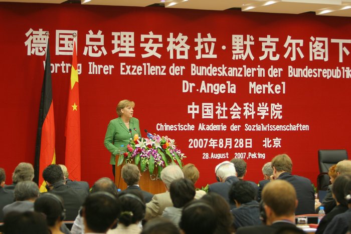 On 28 August 2007, Dr. Angela Merkel, Chancellor of the Federal Republic of Germany and President of the European Council, delivered a speech at CASS.