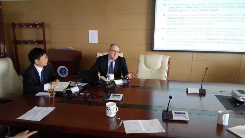 2015年5月6日上午,正在北京访问的意大利财政部前首席经济学家、现为伦敦政治经济学院欧洲研究所访问教授的洛伦佐•科多尼奥(Lorenzo Codogno)先生应邀顺访欧洲所,并做了题为“超越危机:欧元区经济前景展望”的讲座。讲座由欧洲所副所长程卫东研究员主持,与会者包括欧洲所及部分其他在京研究机构的学者共约30人。