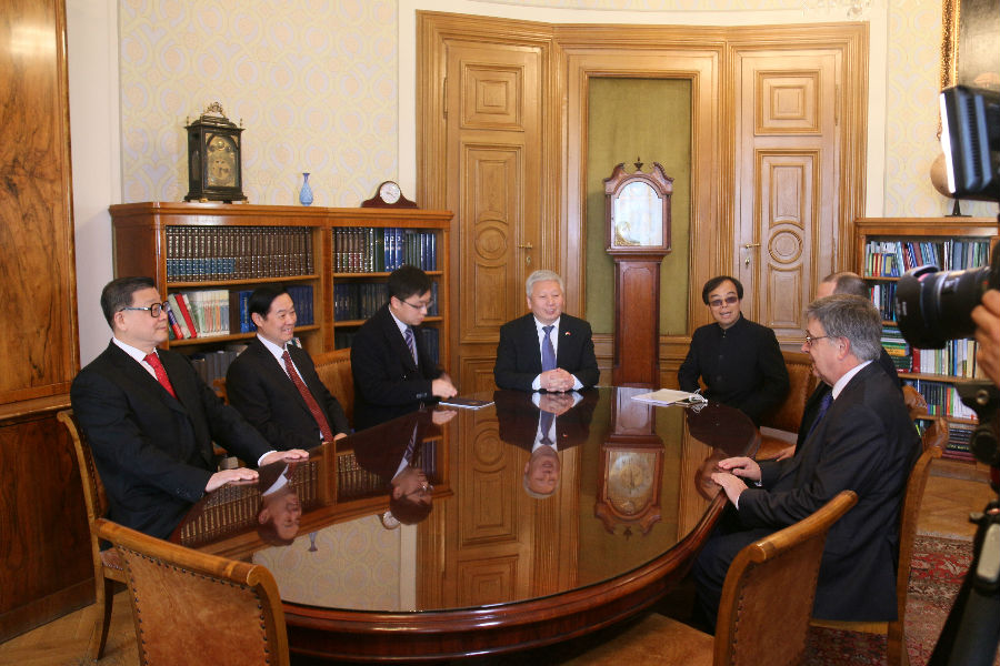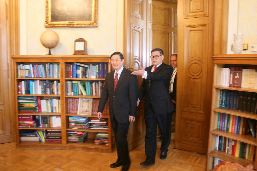 (图:刘奇葆部长进入匈牙利科学院院长办公室)