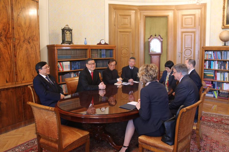 27 04 王伟光院长会见匈牙利科学院院长 16+1智库网络 网站编辑 16+1智库网络 0 2017年4月24日上午,正在匈牙利访问并出席“中国—中东欧研究院”成立暨揭牌仪式的中国社会科学院院长、党组书记、16+1智库网络理事长、中国—中东欧研究院荣誉院长王伟光会见匈牙利科学院院长洛瓦斯·拉斯洛。双方就中国和中东欧国家智库合作、中国社会科学院和匈牙利科学院合作等问题进行了交流。中国社会科学院欧洲研究所所长、16+1 智库网络秘书长、中国—中东欧研究院院长黄平陪同会见。