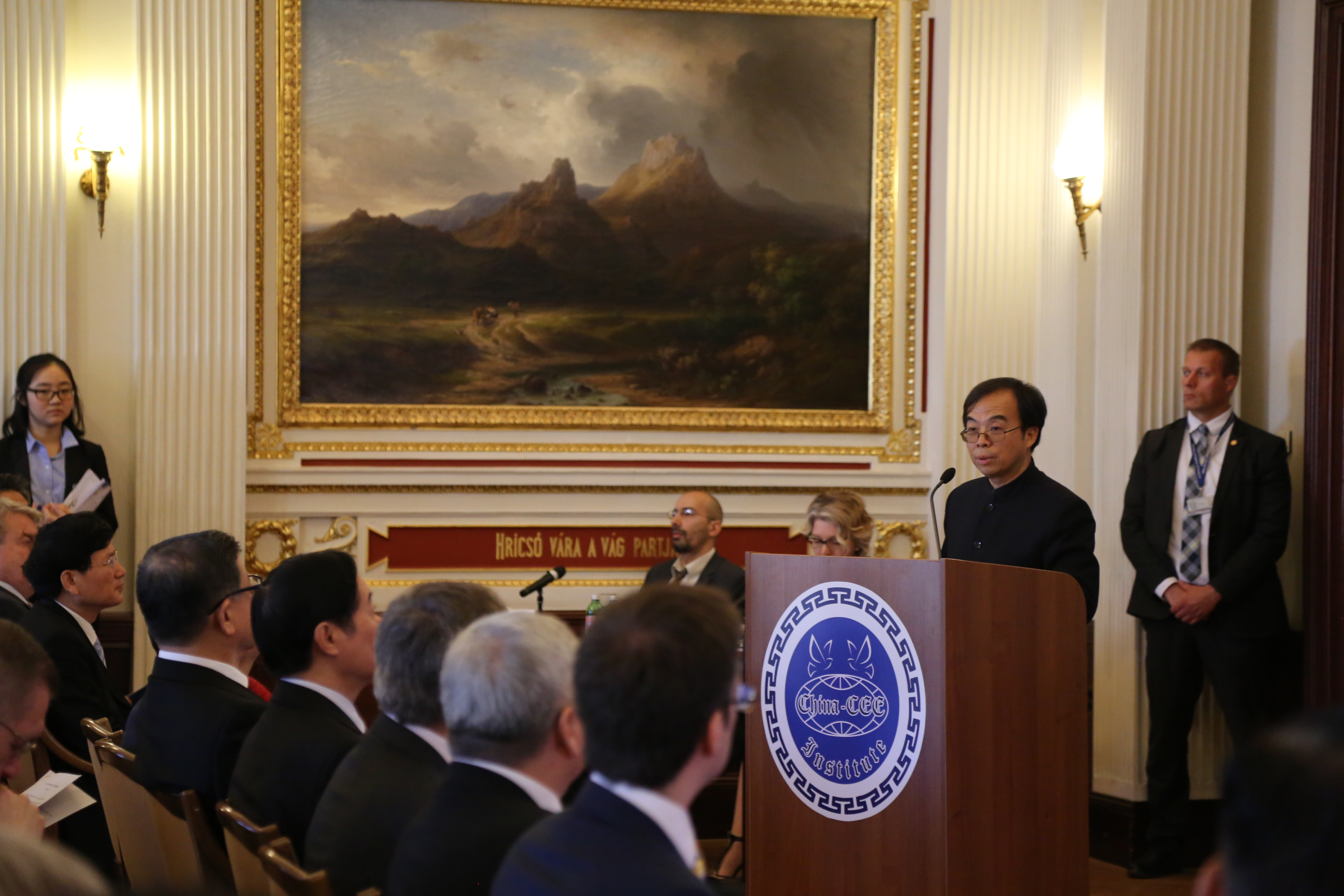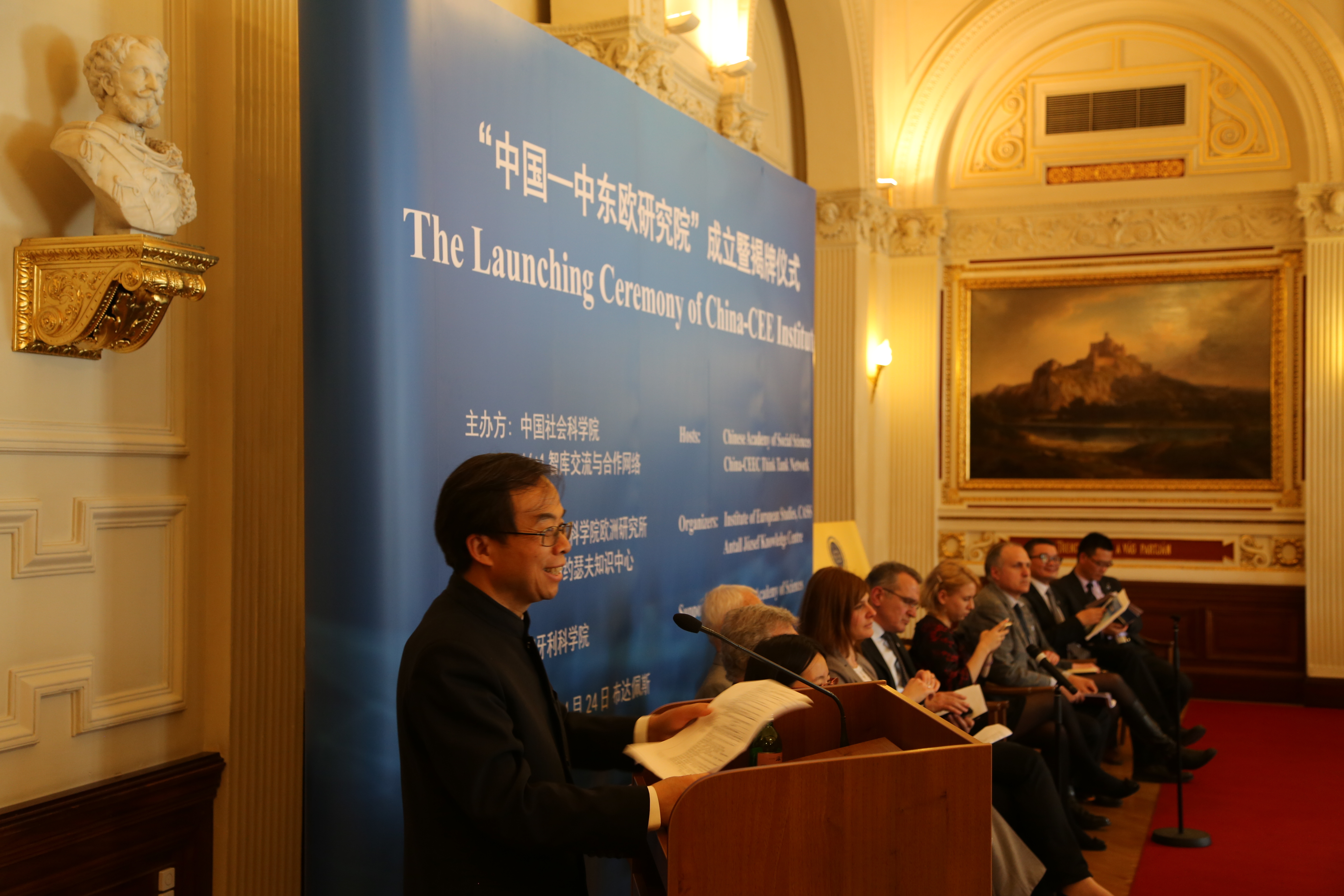 27 04 黄平主持中国—中东欧研究院成立暨揭牌仪式 16+1智库网络 网站编辑 16+1智库网络 0 2017年4月24日上午,“中国—中东欧研究院”成立暨揭牌仪式在匈牙利科学院举行。来自中国和中东欧国家政界、学界、媒体、企业等100多名代表出席。中国社会科学院欧洲研究所所长、16+1 智库网络秘书长、中国—中东欧研究院院长黄平主持了揭牌仪式。图为主持会议现场。