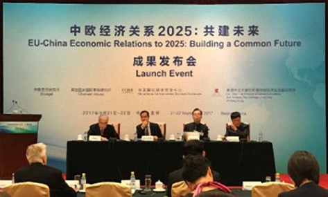 9月13日,中国国际经济交流中心和欧盟布鲁盖尔研究所、英国皇家国际事务研究所、香港中文大学全球经济及金融研究所四个智库,在比利时首都布鲁塞尔联合发布了《中国-欧盟经济关系2025:展望未来》研究报告(英文版)。9月22日,四个智库又在北京联合发布了该研究报告的中文版。随后,中国国际经济交流中心于9月22-23日在北京举办了“首轮中国-欧盟工商领袖和前高官对话”。中国社会科学院欧洲研究所黄平所长受邀出席了这三次会议,并在会上做了专题发言。