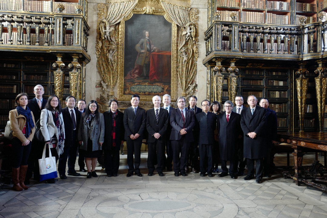 谢伏瞻院长访问团在葡方陪同下参观科英布拉大学图书馆