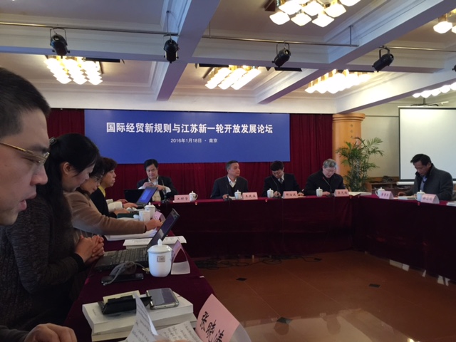 2016年1月18日,受中国社会科学院世界经济与政治研究所和江苏省社会科学院邀请,欧洲所江时学副所长、叶斌副研究员赴南京参加“国际经贸新规则与江苏新一轮开放发展论坛——《TPP文本解读》新书发布会与研讨会”。