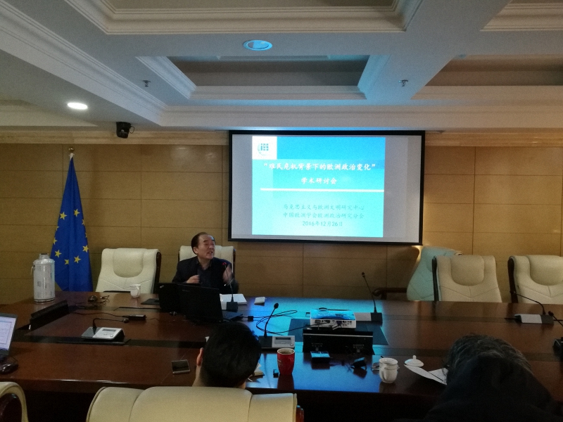 28 12 “难民危机背景下的欧洲政治变化”学术研讨会在我所举办 赵纪周、赵晨 欧洲研究所 0 2016年12月26日,中国社科院马克思主义与欧洲文明研究中心和中国欧洲学会欧洲政治研究分会在欧洲所大会议室联合举办了“难民危机背景下的欧洲政治变化”学术研讨会。本次研讨会特别邀请到中国社科院西亚非洲所研究员殷罡做了专题学术报告,题目为“欧洲能否承受第三次伊斯兰冲击”。欧洲所的研究人员以及社科院相关专业的博士研究生等参加了研讨会,并就相关问题进行了互动交流。