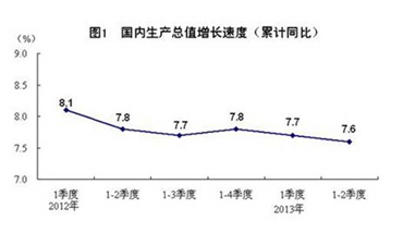 尽管欧洲的经济表现算不得上乘,但与新兴经济体相比却是足够抢眼。新兴经济体的商业活动今年7月出现了四年多以来的首次萎缩,“金砖四国”的产出和新业务均出现下降。尤其是作为新兴经济体领头羊的中国,从去年第一季度开始,也进入了减缓发展期,GDP从8.1%降至7.8%;今年二季度GDP同比增7.5%,上半年增7.6%(如下图所示)。很自然,在这种情况下,市场对新兴经济体的信心开始减弱,貌似一波“唱空狂潮”随之掀起。欧盟与新兴经济体之间形成的这种“比较优势”足以引发部分资本撤离新兴市场、迁往欧洲市场。