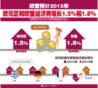 欧盟委员会于日前发表了2015年春季经济预测报告。同今年2月份发表的冬季经济预测报告相比,欧盟春季经济预测报告适度上调了对今明两年欧盟经济增长的预期:欧盟和欧元区经济在2015年将分别增长1.8%和1.5%,到2016年将分别增长2.1%和1.9%。报告指出,欧盟经济将得益于众多积极因素的支持:国际油价仍然相对较低,全球经济保持稳定增长,欧元持续贬值,欧盟宏观经济政策有利于经济增长。
