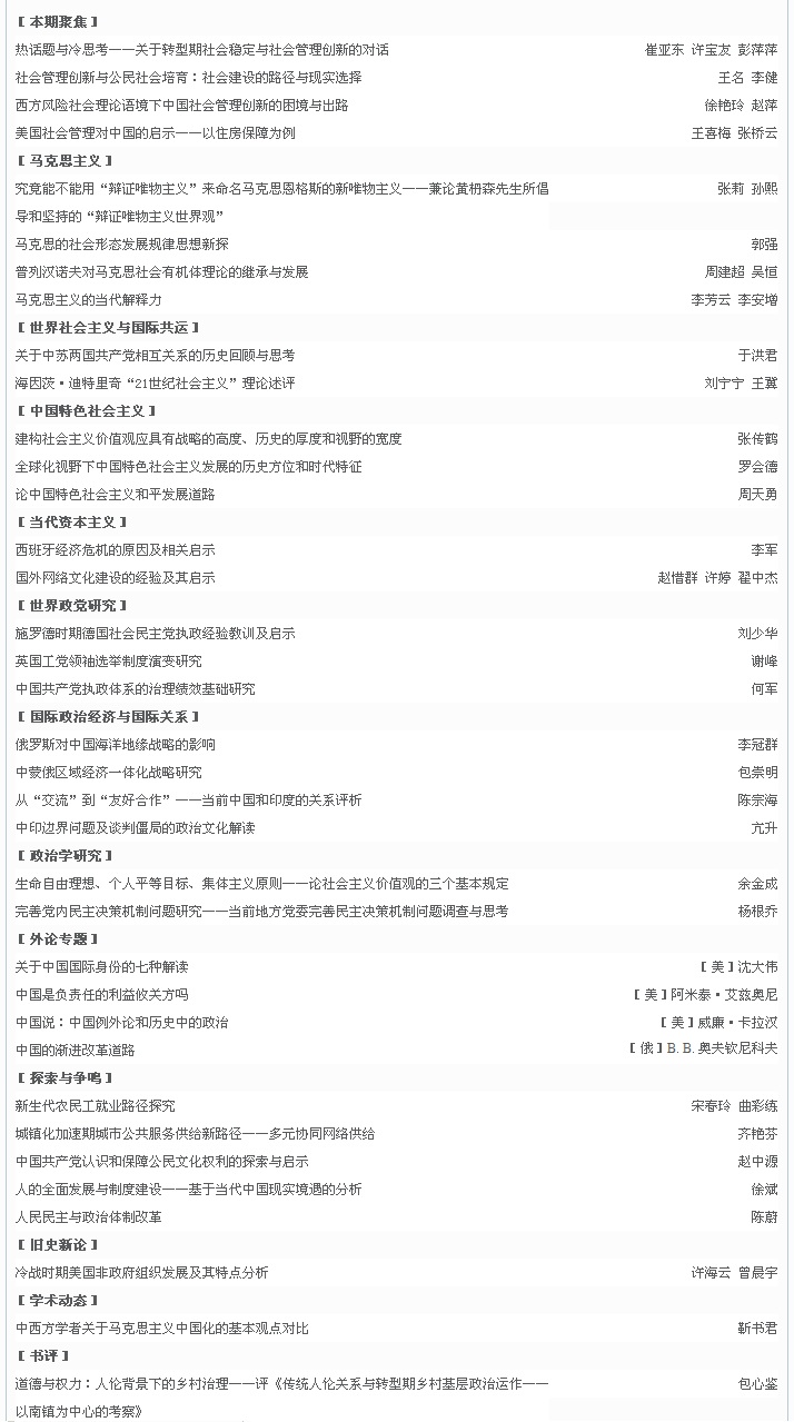 期刊目录:《当代世界与社会主义》 2013年第1期